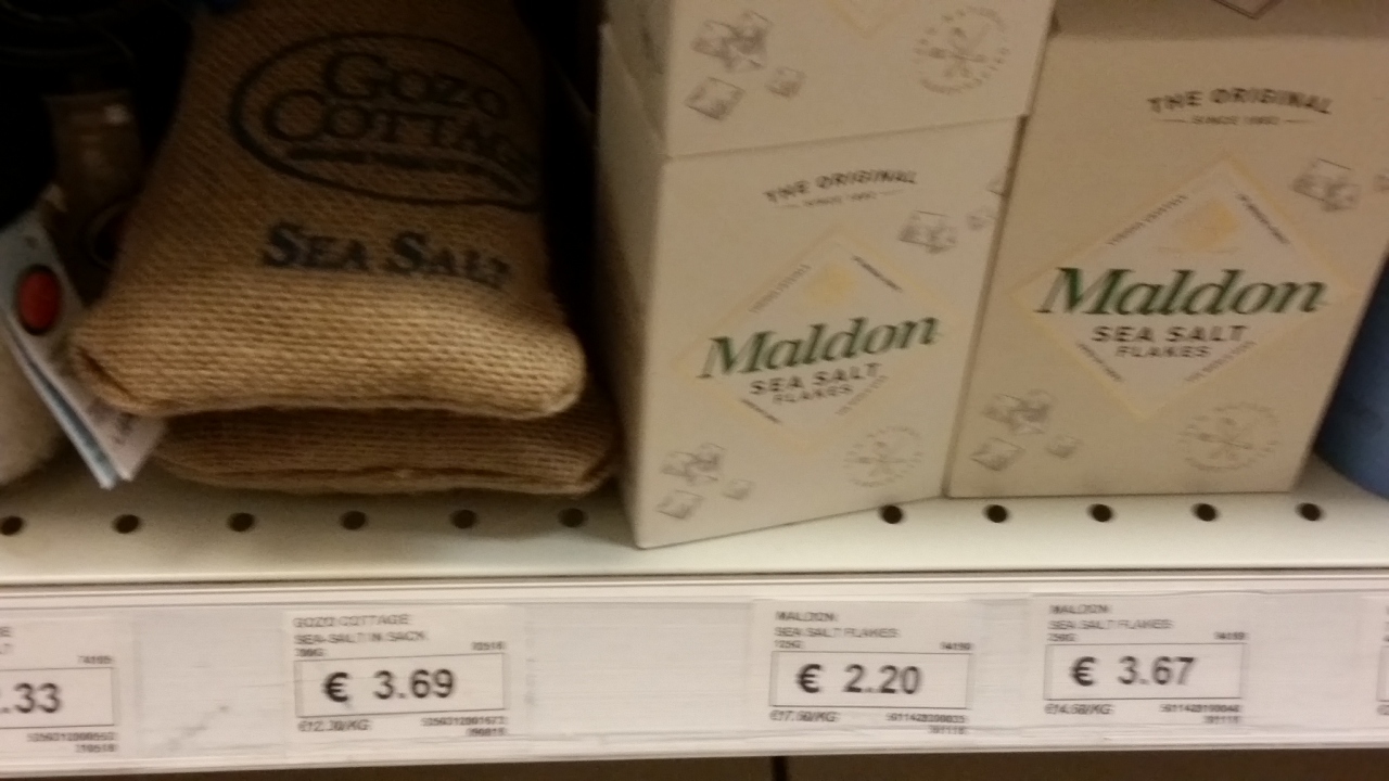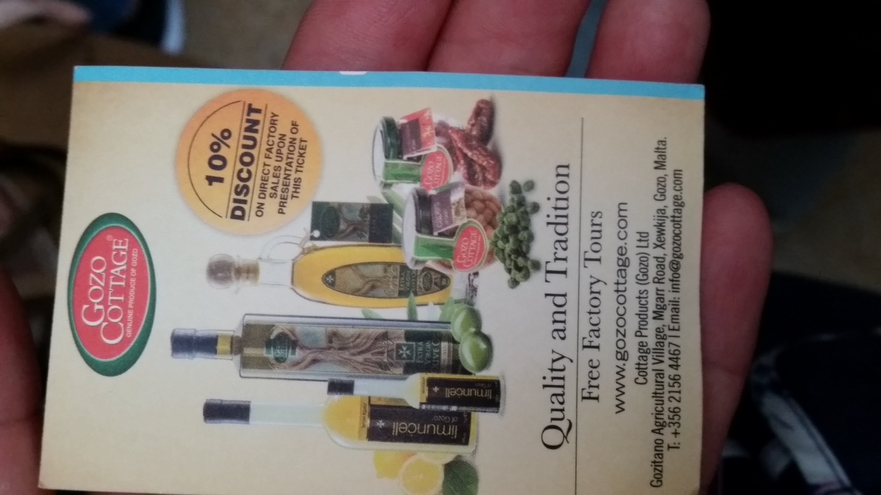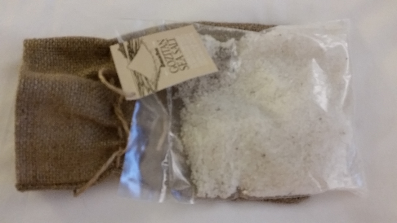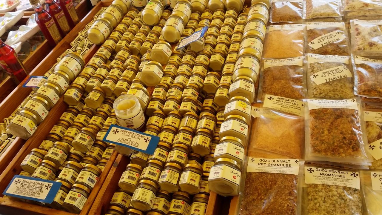 ツアーの合間に、現地ガイドさんが連れて行ってくれました。チタデルの下、広場前にあります。ハニーやジャムなど、試食したうえで買い物ができます。ハニーやジャムは瓶入りで重いので、私は麻袋入りのゴゾソルトを購入しました。250g入り、3.25€です。