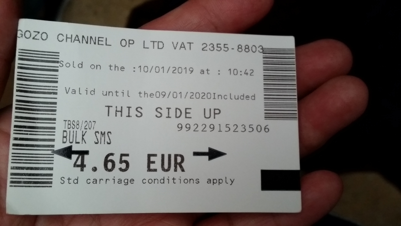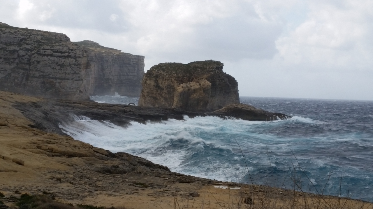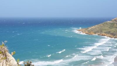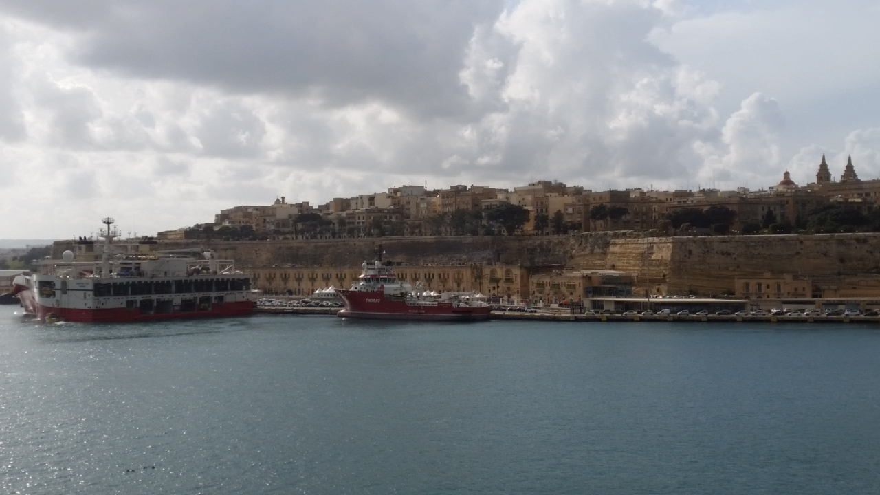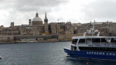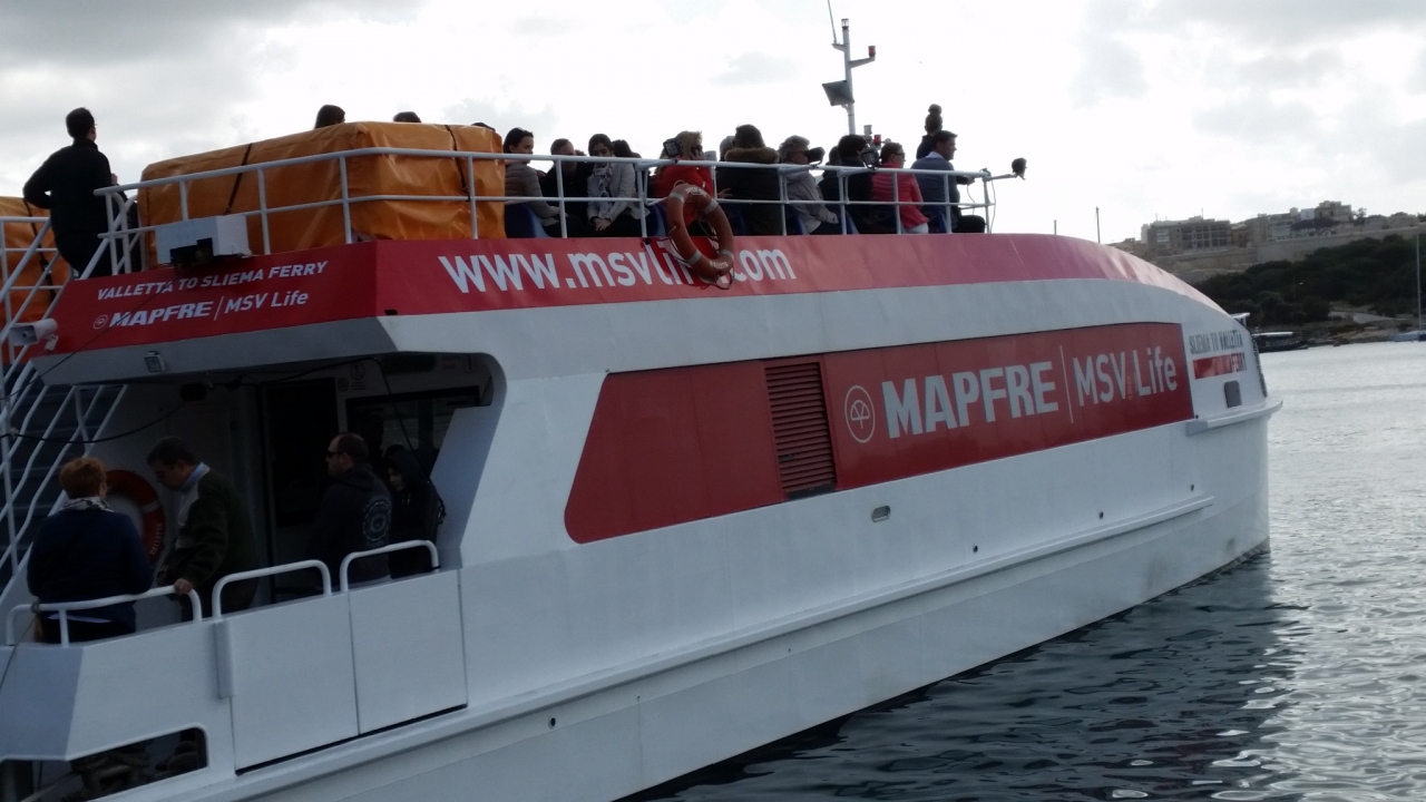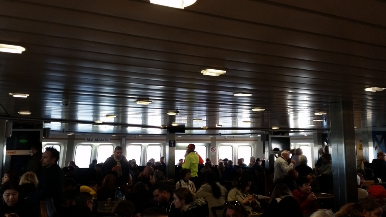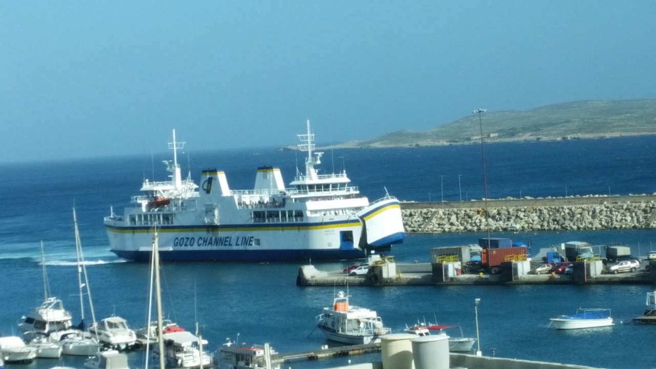 ツアーで、マルタ島とゴゾ島の間をフェリーで往復しました。乗船時間は片道30分ほどです。船には、トイレや売店もあります。風が強い日で、デッキに出てみましたが、まっすぐ歩いているつもりでも曲がって行きました。帰り、曲がった際に大揺れ、テーブルがガタガタと滑って行き、悲鳴が聞こえました。