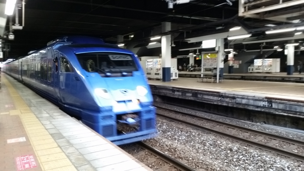 小倉から博多まで乗車しました。前日に金券ショップで特急乗車券1420円で購入、窓口だと1800円なので、少しお得です。今回は青いソニックに乗車。時間は40分、停車駅は3駅と、新幹線の次に速く、新幹線より安く、快適です。5号車にはキャリーを置く棚があるので、旅行者には便利です。