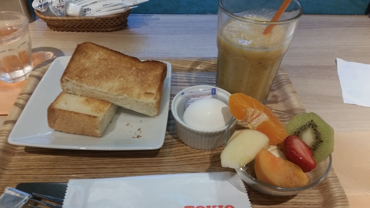 福岡天神で、ちょっとフルーツが食べたいときに訪問します。平日15時まで休日14時までがランチタイム。トーストとゆで卵と、フルーツとフルーツジュースの「プリンセスランチ」は500円。テイクアウェーでフルーツサンド。甘くない生クリームとフルーツが入っていて美味しいです。