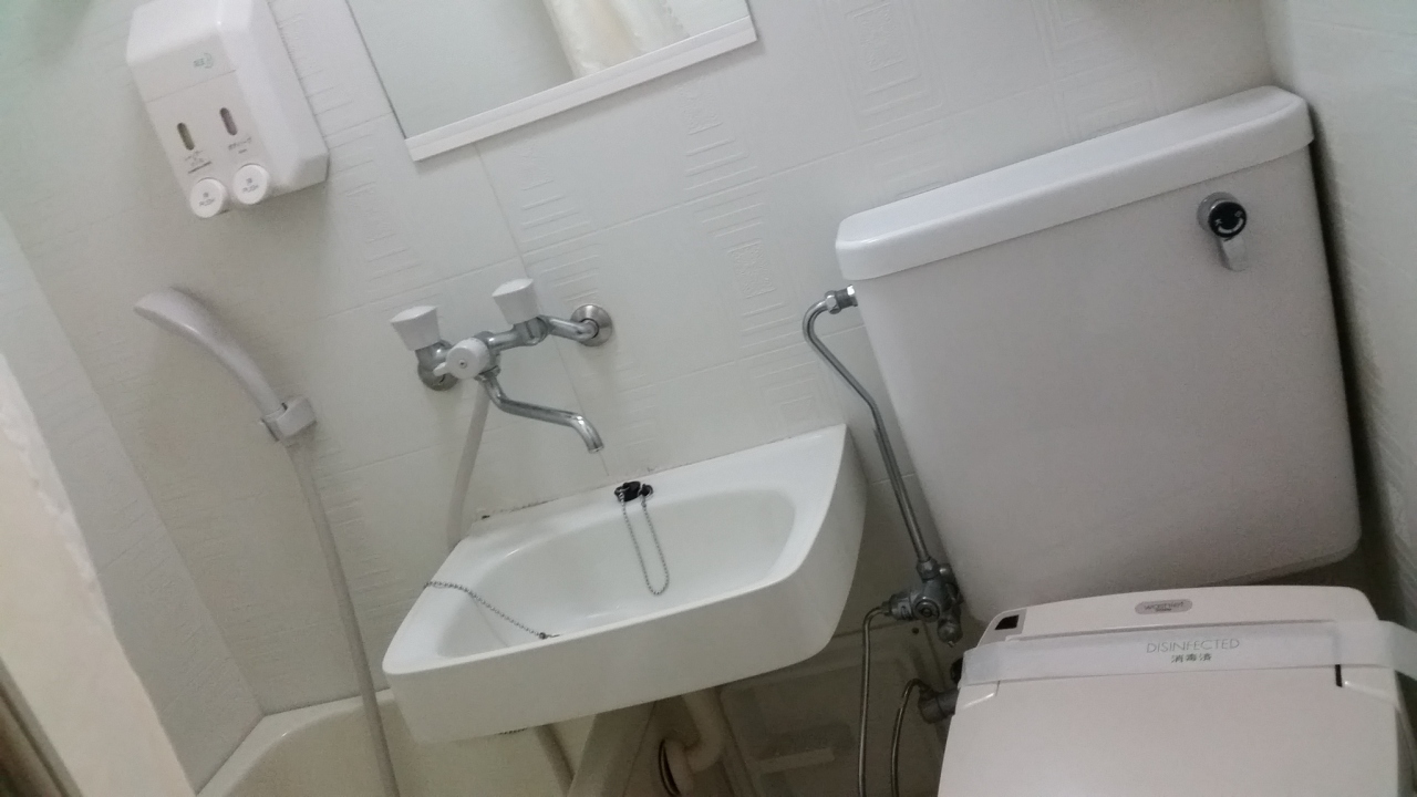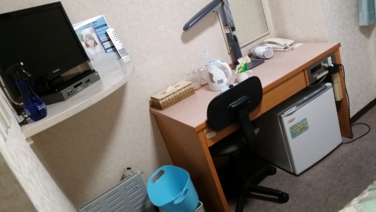 博多駅から徒歩6分。ドミトリーではない、格安のビジネスホテルです。電気ポットも、お茶も湯飲みも、自分で1階から運びます。BSも入りません。古いですが値段を考えれば、何でも納得。今回は長方形の形の部屋で、カニさん歩きをしなくてもトイレに入れました。