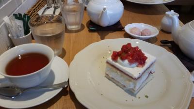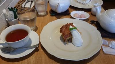 博多在住の、美味しい物をよく知っている従姉妹と一緒に行きました。紅茶はティーポットで出てきます。私はアップルパイ、彼女は苺のショートケーキをシェアして、どちらも美味しく頂きました。ゆっくり紅茶を飲みながら、長話をして楽しいひと時を過ごしました。