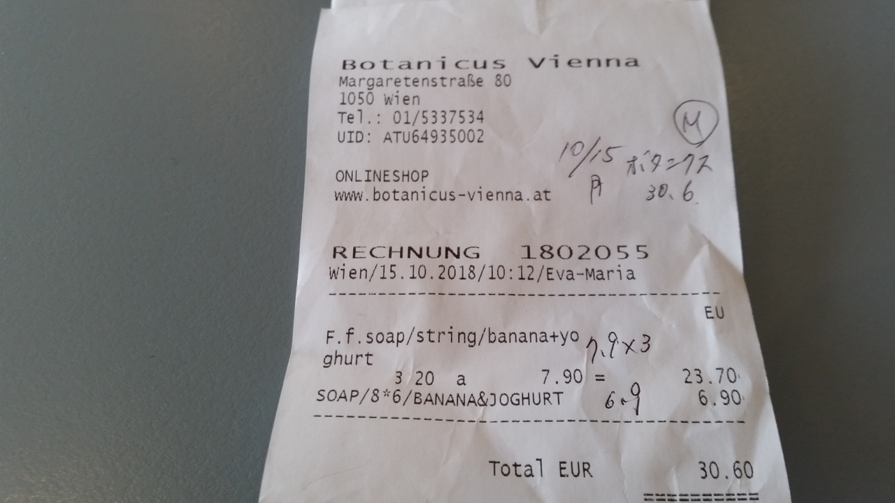 チェコのプラハに2軒あり、以前そこで洗顔せっけんを購入しました。お肌がしっとりすべすべになったので、今回はウィーンで買うことを思い立ち、ツアーから離れ、一人で地下鉄を乗り替えて行きました。店員はとても親切でした。