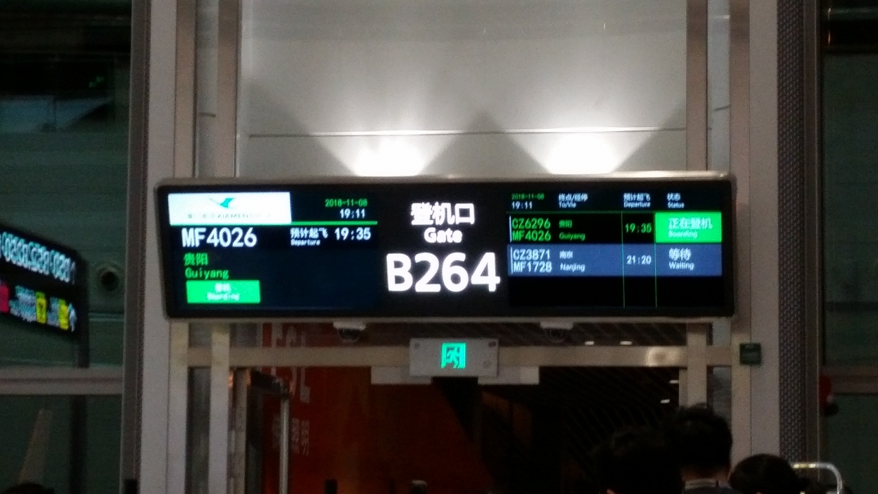 行きは羽田からここ、そして貴陽へと乗り継ぎのために利用しました。帰りはここから羽田まで利用。広い広い広い空港です。横に長く、乗り継ぎ搭乗口までは、遠い遠い。モノレールを作るとか、利用者が便利なようにと考えて造ったとは思えません。トイレや、給湯施設があちこちにあります。
