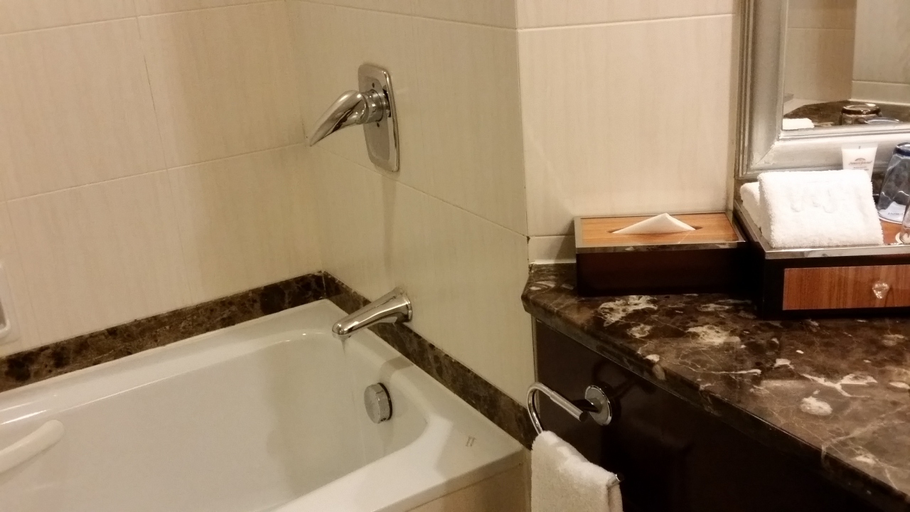 ツアーで宿泊しました。名前からするとアメリカ系のホテルかな?部屋はツインでキャリーを広げても十分な広さです。シャワーブースとバスタブの両方があります。清潔で、無料のお水、お茶、アメニティー、バスローブがあります。朝食メニューの種類も多いです。