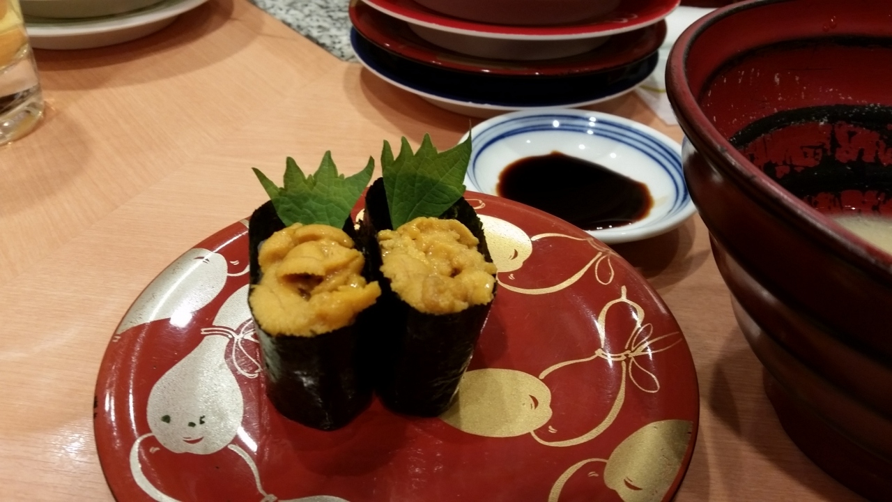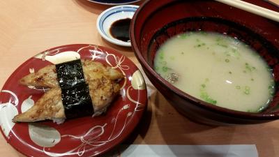 博多で最後に食べたい物は、やはり新鮮な魚。そこでここのお寿司を頂きました。早目の夕食と思い、17時頃行きましたがやはり行列していました。甘エビと、焼き穴子と、いなりと、貝汁と、ウニ。と軽め。2000円でおつりが来ました。美味しかったです。