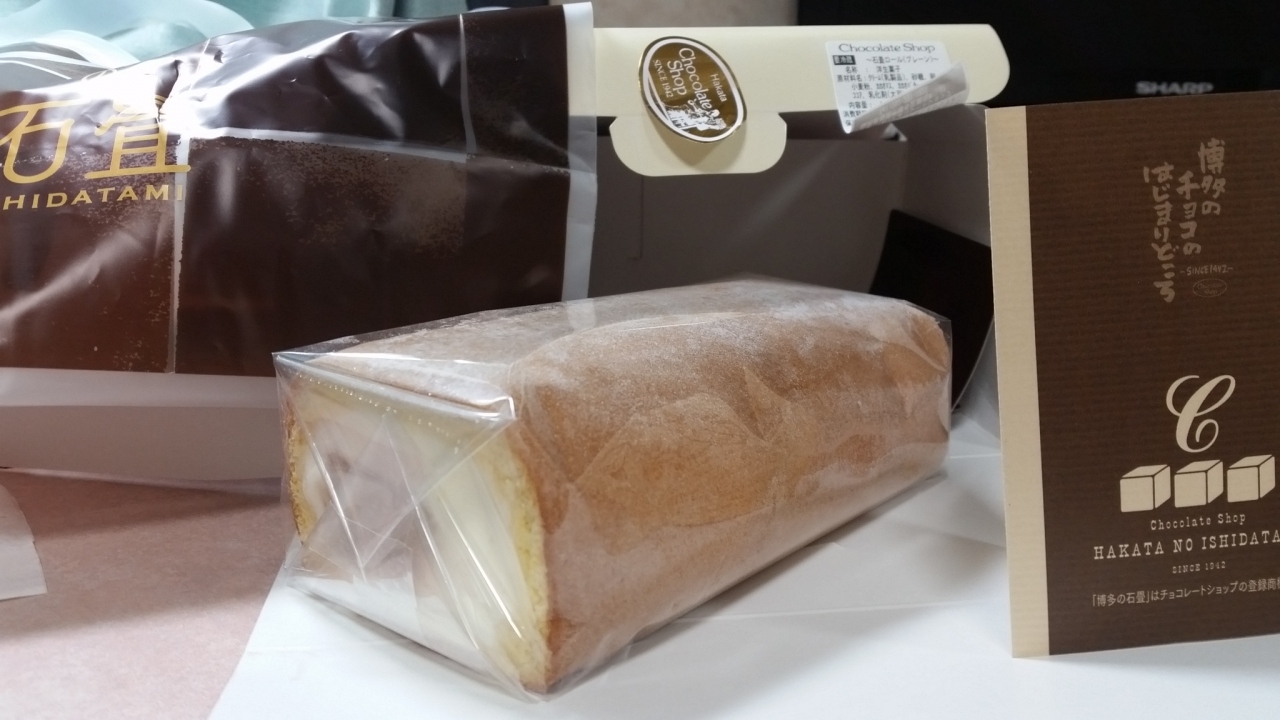 毎月博多に行くので、「博多のお土産何が良い?」と聞くと、必ずリクエストされます。夏は心配ですが、涼しくなったので、お土産に復活したロールケーキ。外側はふわふわのカステラ、その内側がしっとりした生クリーム。中心はしっとりしたチョコレート生クリーム。美味しいです。1本950円。プレーンが好き。