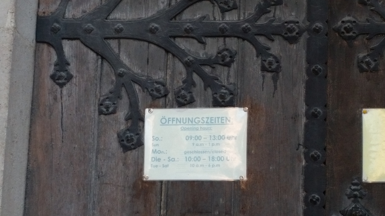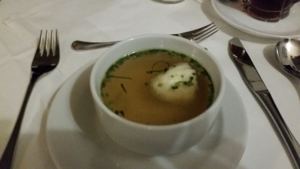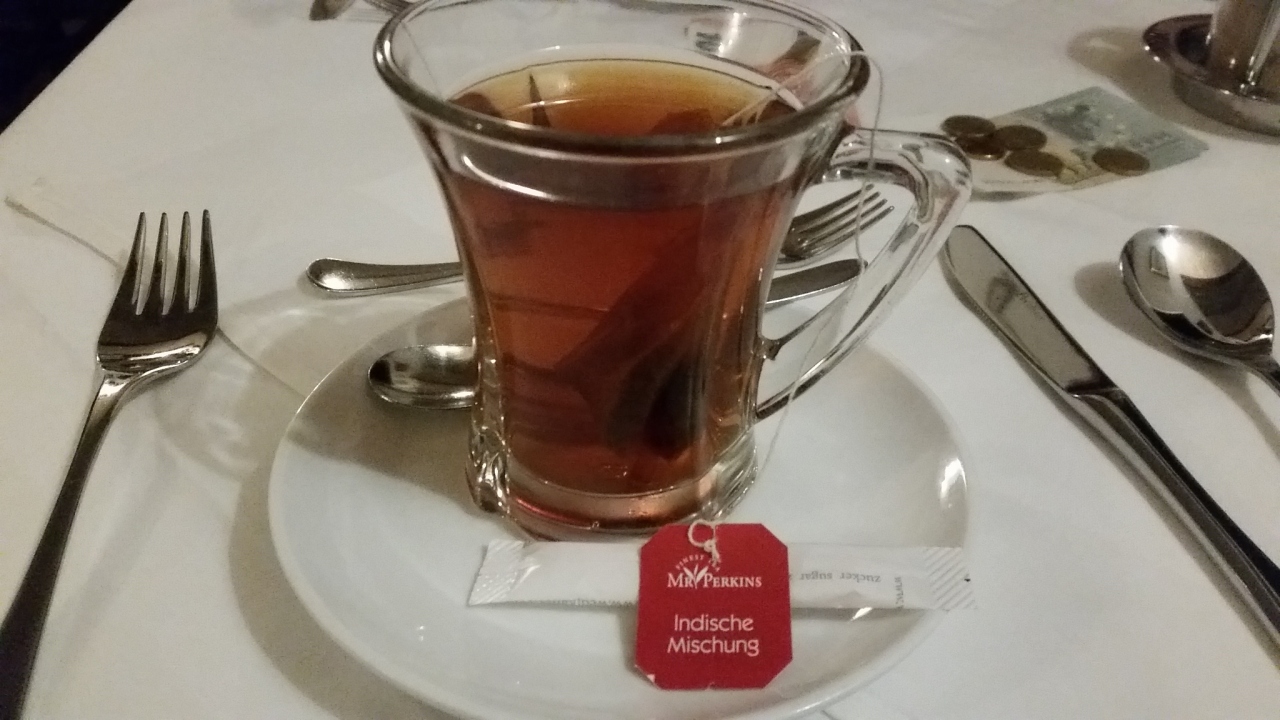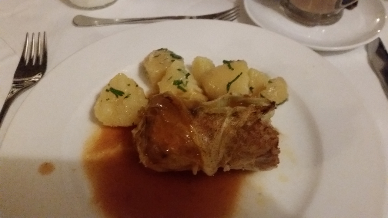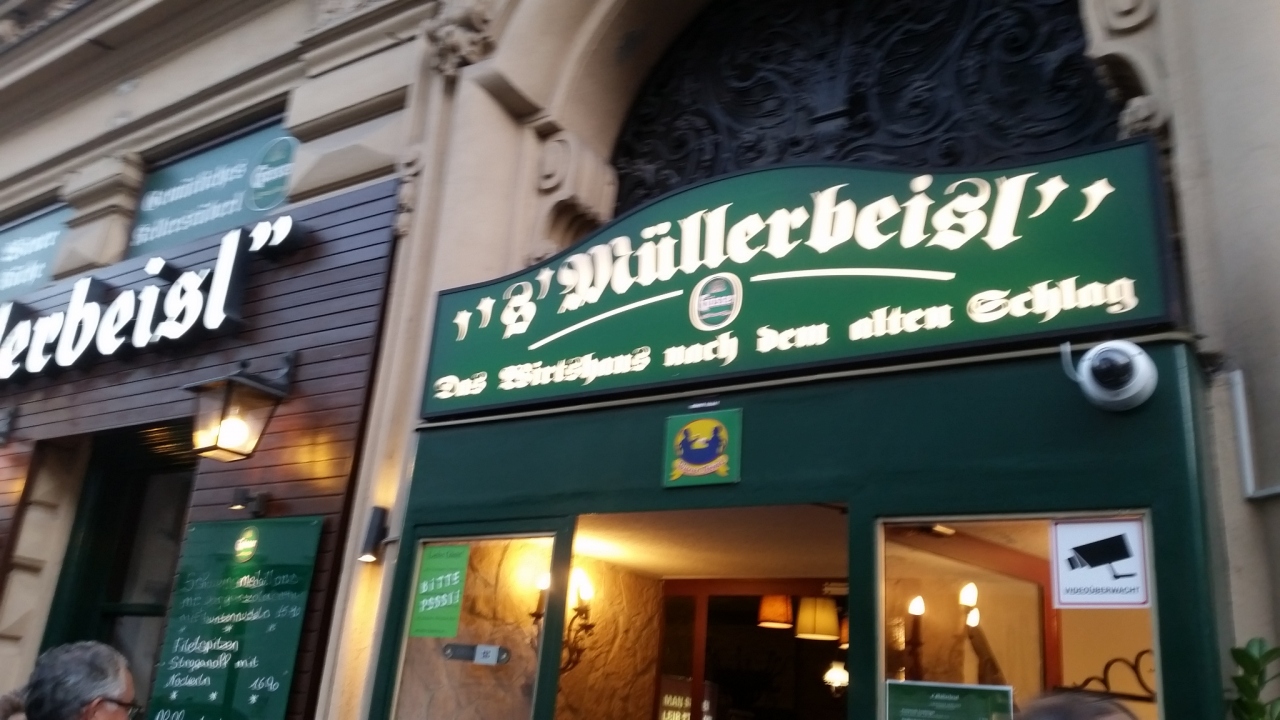 ツアーでランチに訪問しました。偶然街はお祭りで大混雑、サーブに時間がかかりました。メニューはシュー入りスープ、ウィンナシュニッツェル、クレープ。美味しかったです。紅茶は2.9ユーロ(386円)大きなカフェオレボールに入り、蓮華が添えられていました。