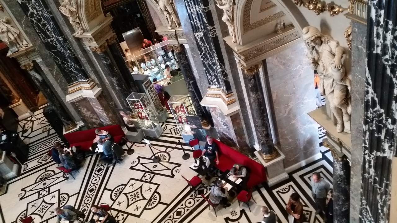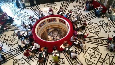 ツアーの自由時間に訪問しました。今回は美術館の鑑賞というより、ここに来てみたかったというのが正直なところです。日曜のお昼なので混んでいましたが、同じツアーの方と相席で、サンドイッチと紅茶を。上からの眺めると、床から、壁から、天井までどこも美しかったです。