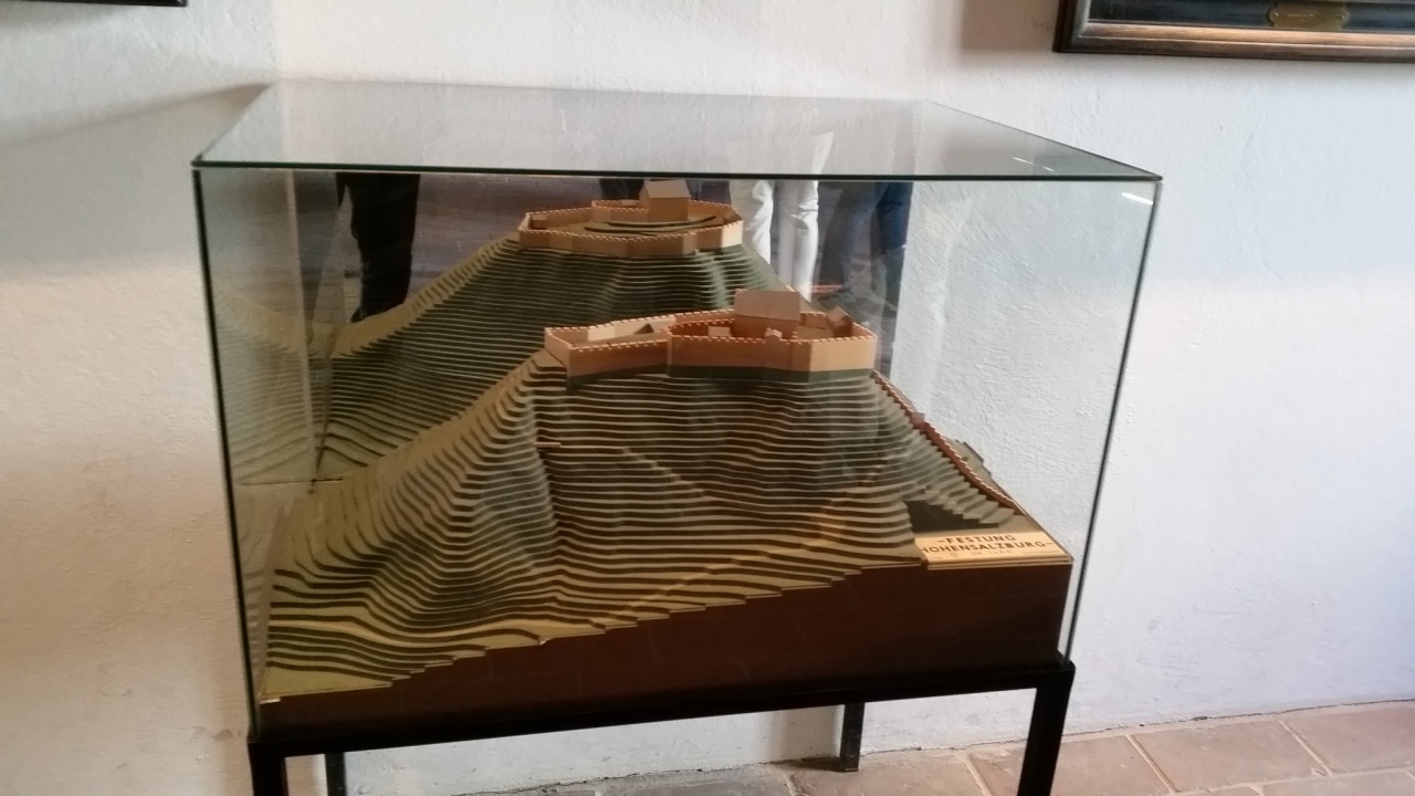 ツアーの希望者で添乗員と一緒に行きました。団体割引料金で11.2ユーロ(1500円)往復のケーブルカーと、入場券と日本語のガイドフォーンが付いています。城塞上からの眺めは大変良いですが、説明を聞き終わるまで次の部屋には入れて貰えないので、歴史に興味のない方には不向きです。