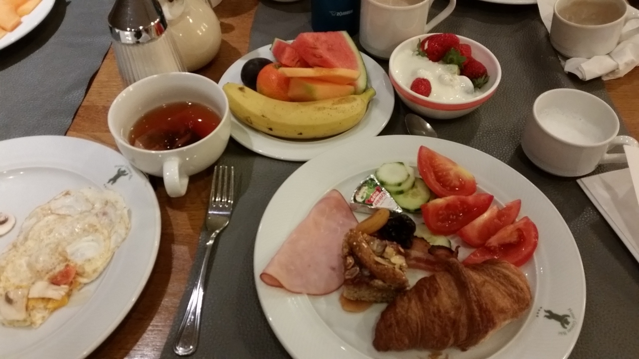 ツアーで1泊しました。ホテルの名前の通り、外壁に熊の絵が描かれています。前が教会で、旧市街やショッピングモールなどが徒歩10分程度と近く便利です。朝食はオムレツを目の前で作ってくれ、果物の種類が多いです。