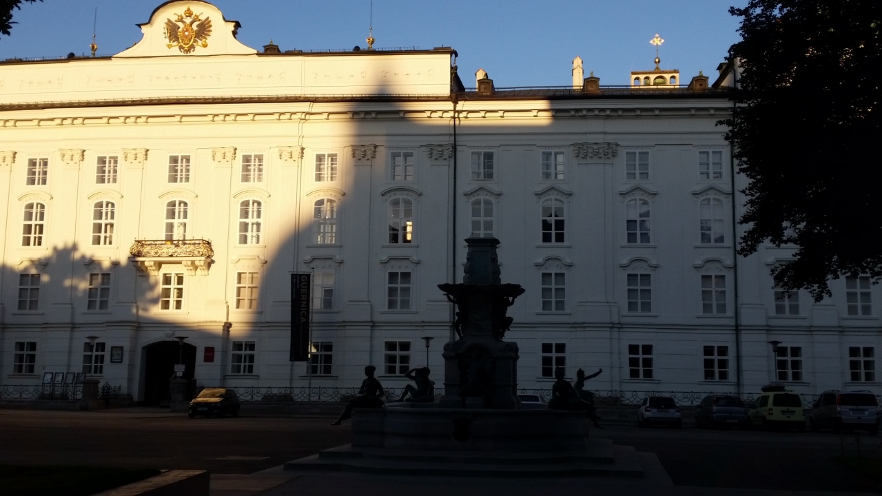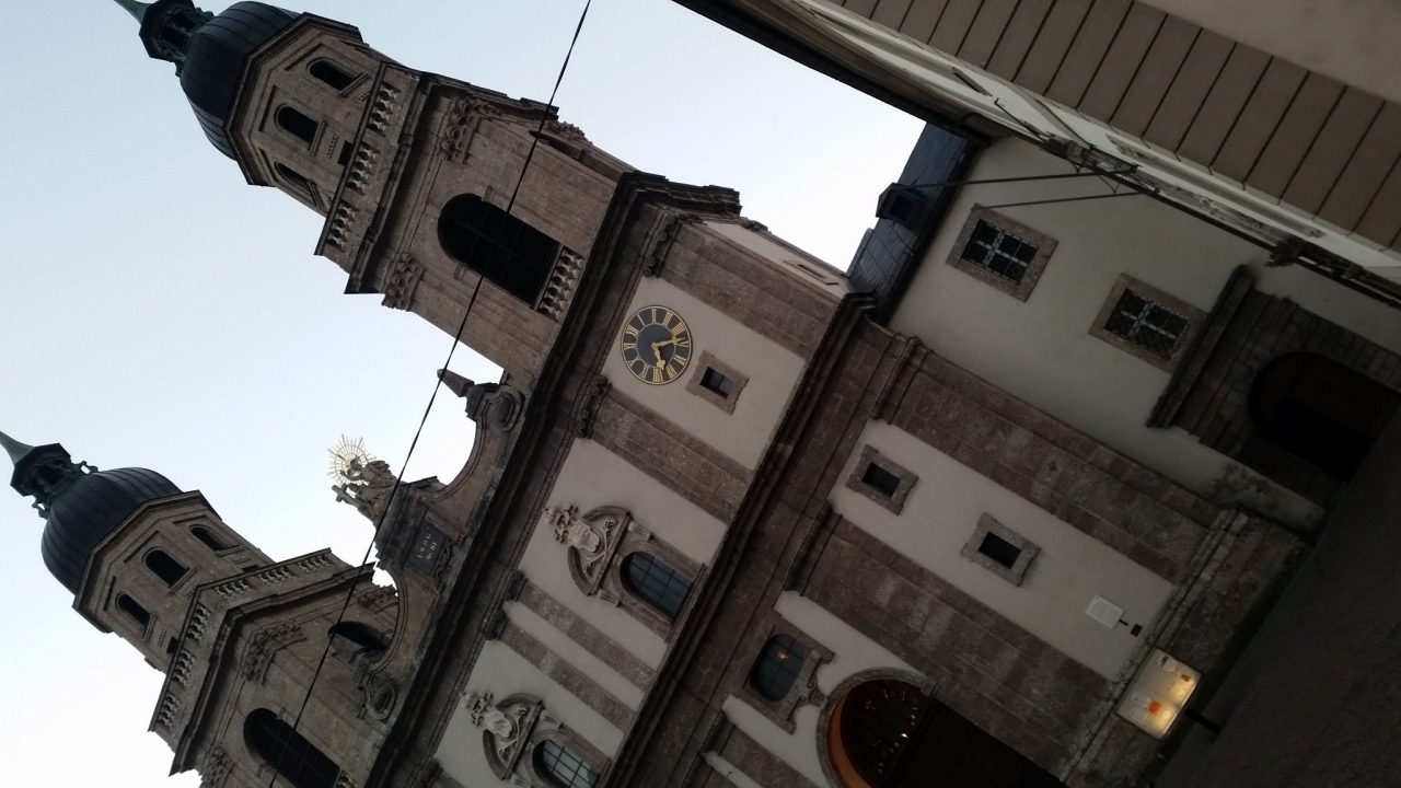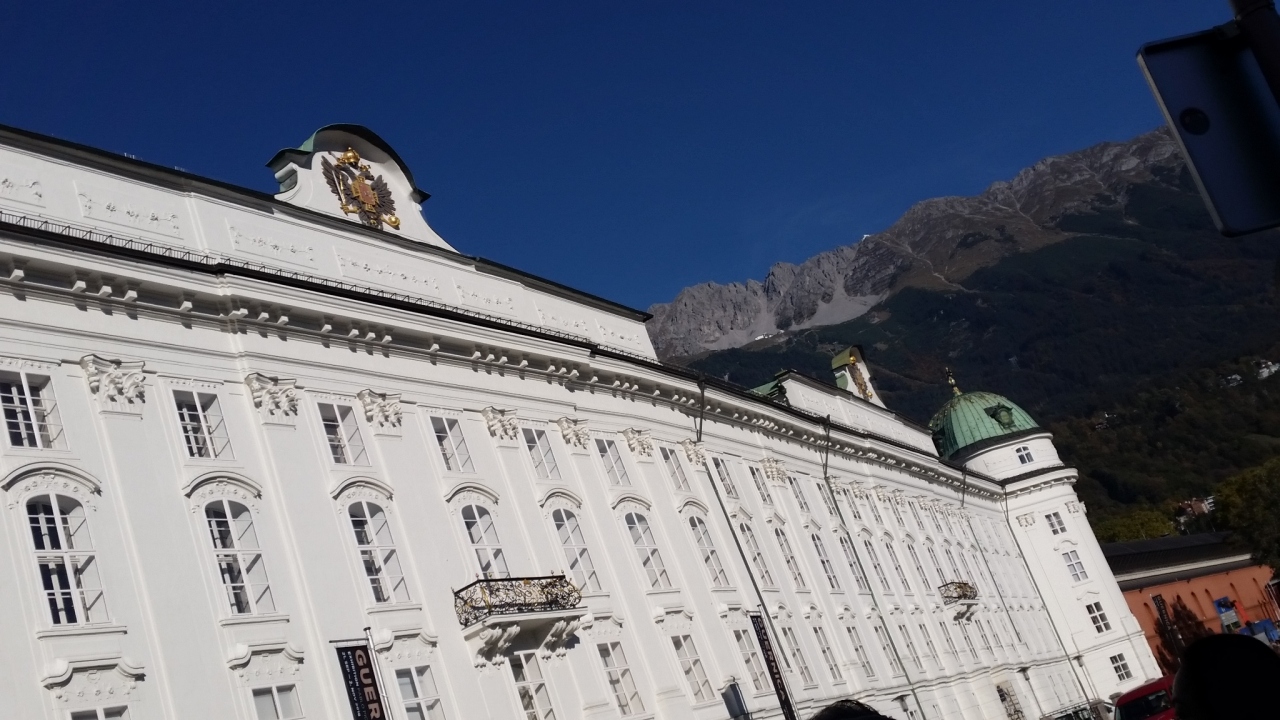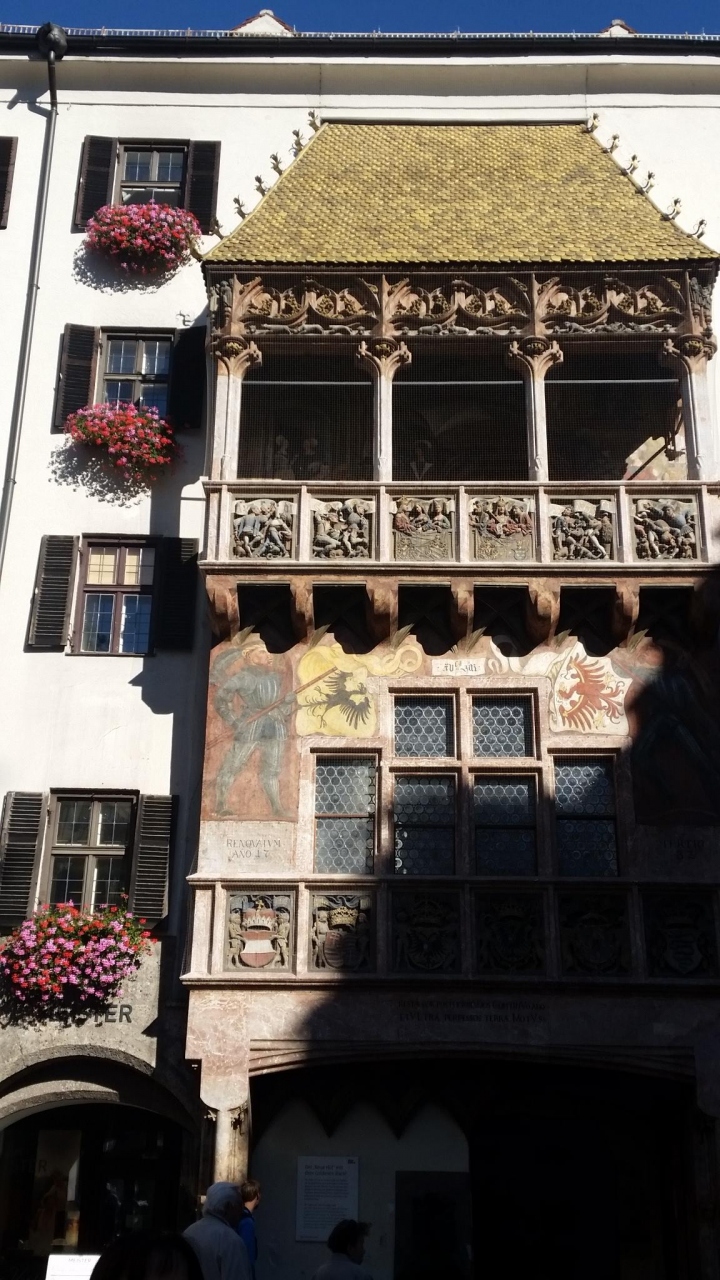 ツアーで訪問しました。マクシミリアン1世が広場の行事を見学するために1496年に造らせたバルコニーです。銅板に金箔をはった瓦が2657枚も貼られ、金色に光っています。観光客が大勢ここで写真を撮っていて、大変賑やかです。