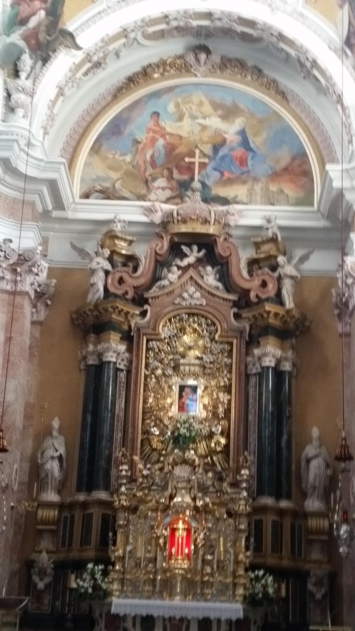 ツアーで訪問しました。カメラチケットは1ユーロ。内部が大変豪華です。主祭壇上にはルーカス・クラーナハ作の「救いの聖母」があり、小さいので、見損なわないように気を付けて。天井のフレスコ画はバロックの巨匠アザム兄弟の作品。パイプオルガンも立派。あちこち見ごたえたっぷりです。