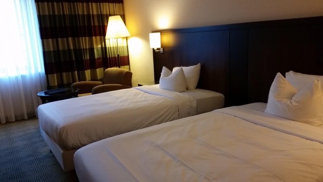 ツアーで2連泊しました。目の前がモールで、駅とスーパーまで徒歩10分程度と近く便利です。部屋は広く清潔で、バスタブも、電気ポットも無料お茶セットも、冷蔵庫もあります。朝食ブッフェは品数も多く、美味しかったです。