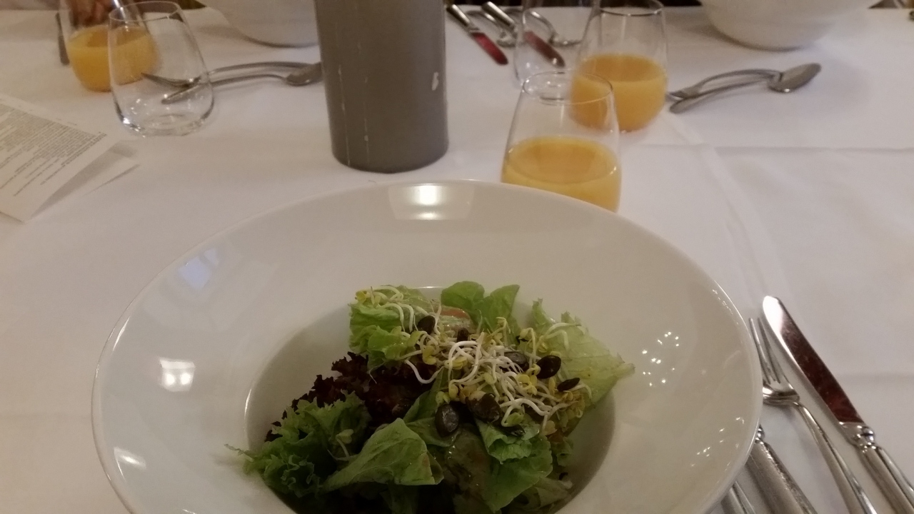 ツアーディナーで利用しました。中欧最古のレストランです。部屋が幾つかあり、チェロの音色も聞こえたので、生演奏を聴きながらのディナーもできるようです。ワイン、ビール、オレンジジュースの3択で1つ飲み物が付いていました。メニューはサラダ、ターフェルシュピッツ、チョコケーキ。おしゃれで美味しかったです。