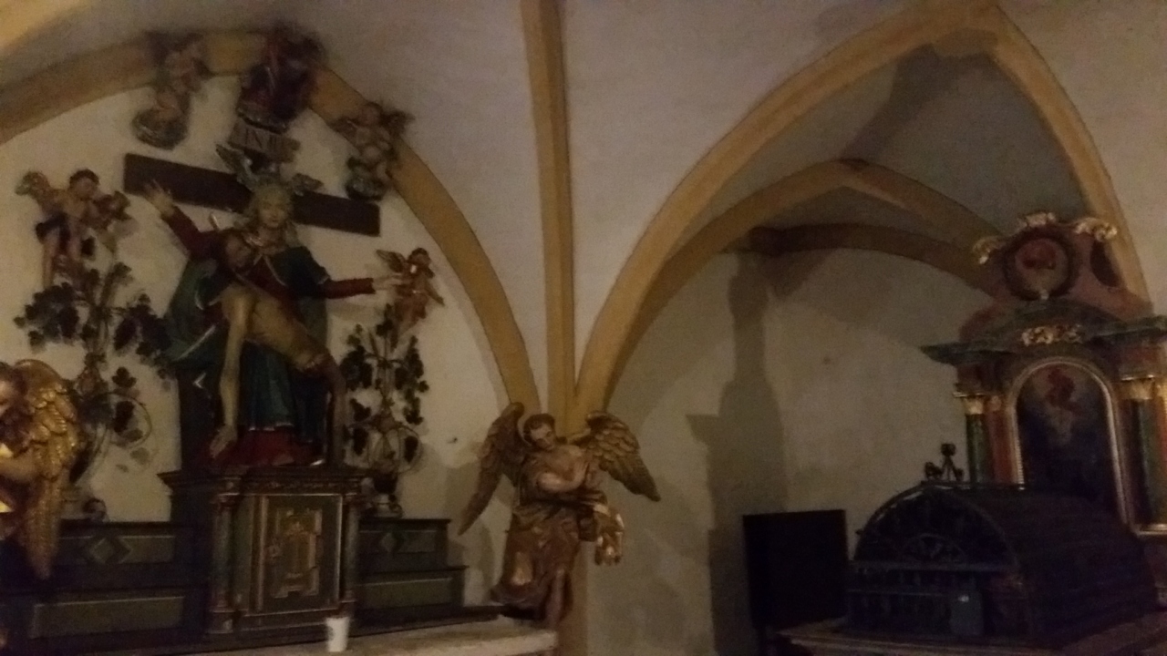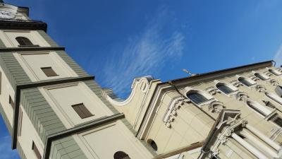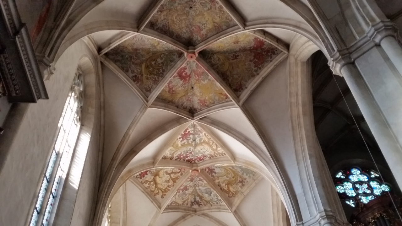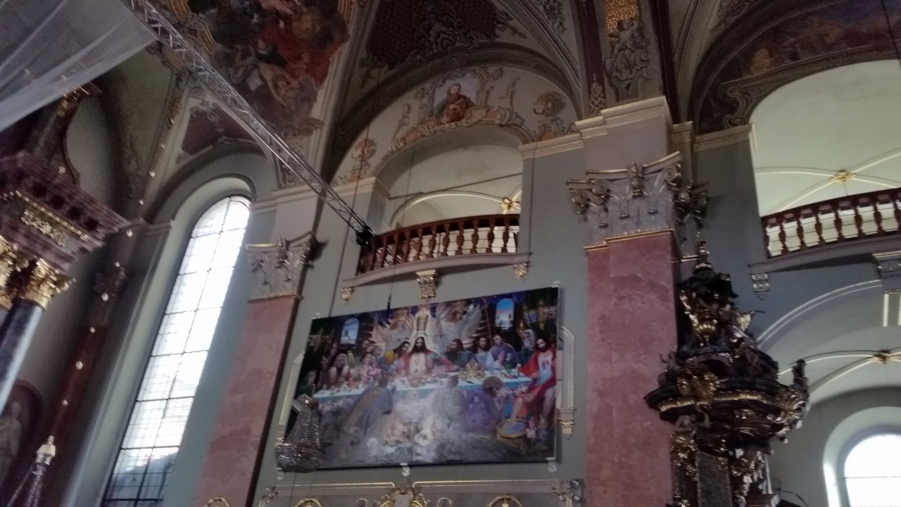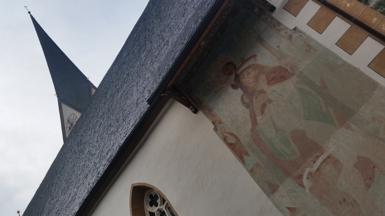 ツアーで訪問しました。町はお祭りで賑わっていましたが、教会はひっそりとしていました。高さ92mの塔と、優雅なバロック様式の内陣で知られています。ウィーン幻想派の巨匠エルンスト・フックスが約20年かけて描いた礼拝堂の、鮮やかで幻想的な壁絵が素敵です。