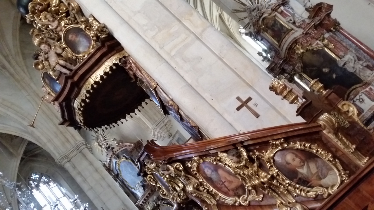 ツアーで訪問しました。王宮と道を挟んで建っています。外観よりも内部の方が豪華で荘厳な感じです。1438年から1462年に建てられた後期ゴシック様式の教会で、入場無料です。ドームの南側に隣接する緑色の丸屋根が皇帝フェルディナント2世の眠る霊廟マウソレウムです。