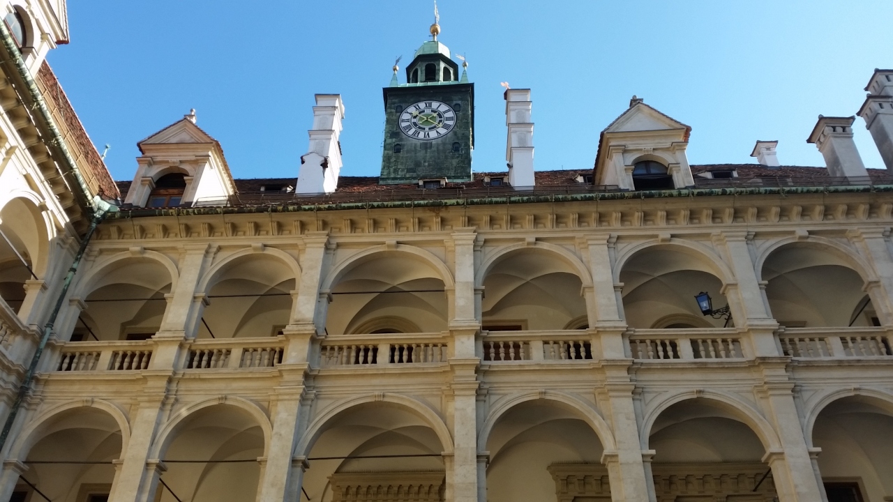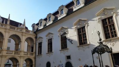 ツアーで訪問しました。外側からは良く分かりませんが、中庭に入ると、17世紀のルネッサンス様式の建物と言うことがよくわかります。1557年から1565年に建てられたそうです。隣の市庁舎よりも古い建物です。