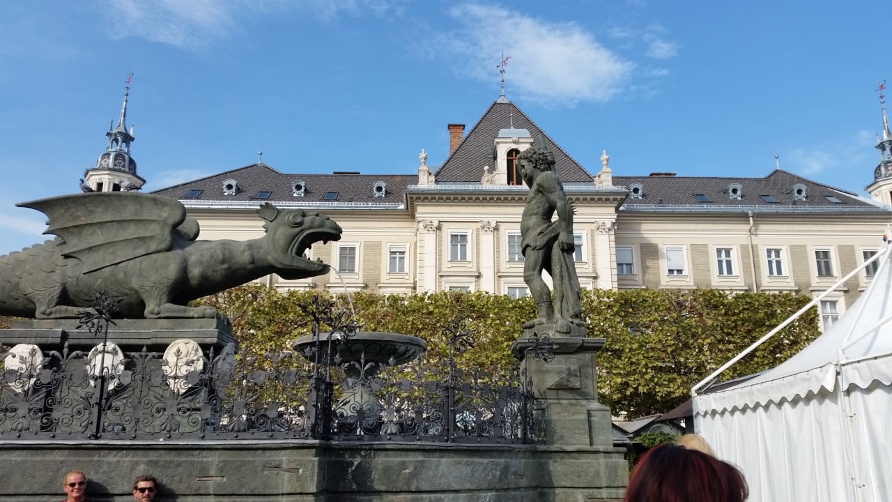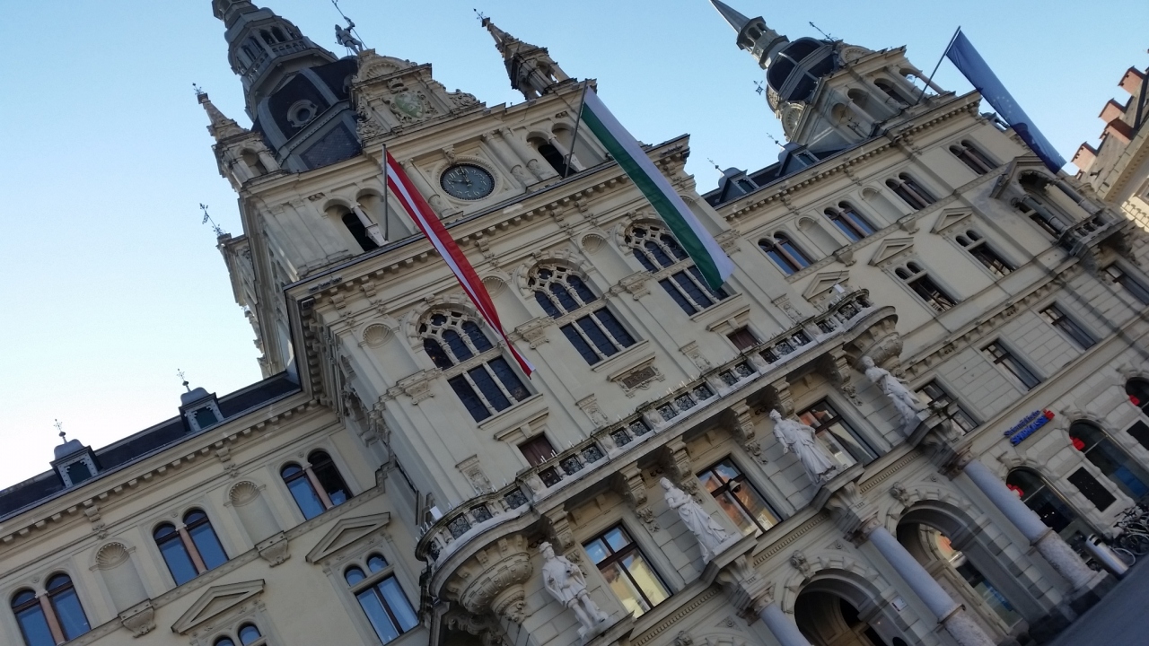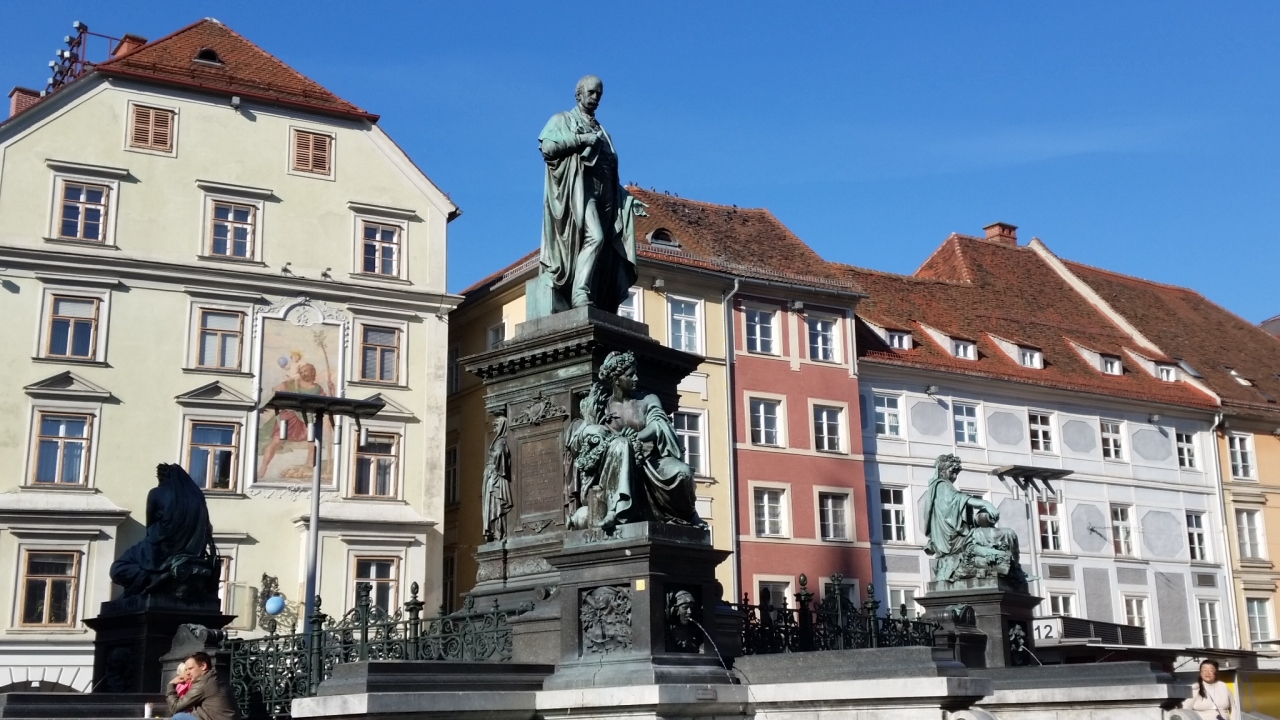 ツアーで前を通りました。19世紀末に建てられた、グラーツの顔です。ハウプト広場に面しており、ヨハン大公の銅像が立っており、前には軽食や飲み物を売るスタンドが並び、活気に満ちています。奥には州庁舎が建っています。