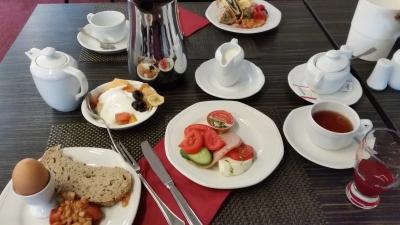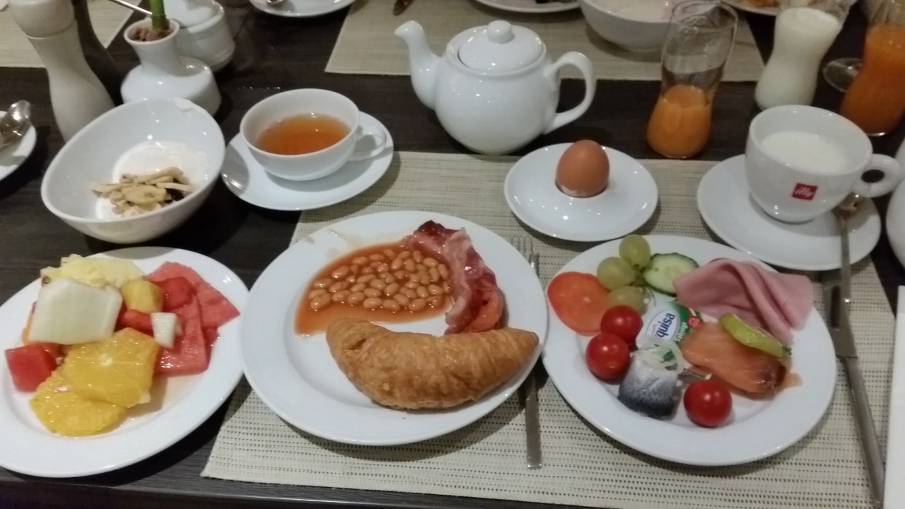 ツアー初日に1泊しました。20時過ぎに到着したので、寝て朝食だけ頂きました。部屋にバスタブ、パンツプレスなどはあります。ホテル内にサウナもあるようですが、行ってないので分かりません。朝食はブッフェ。品数・味とも普通でした。
