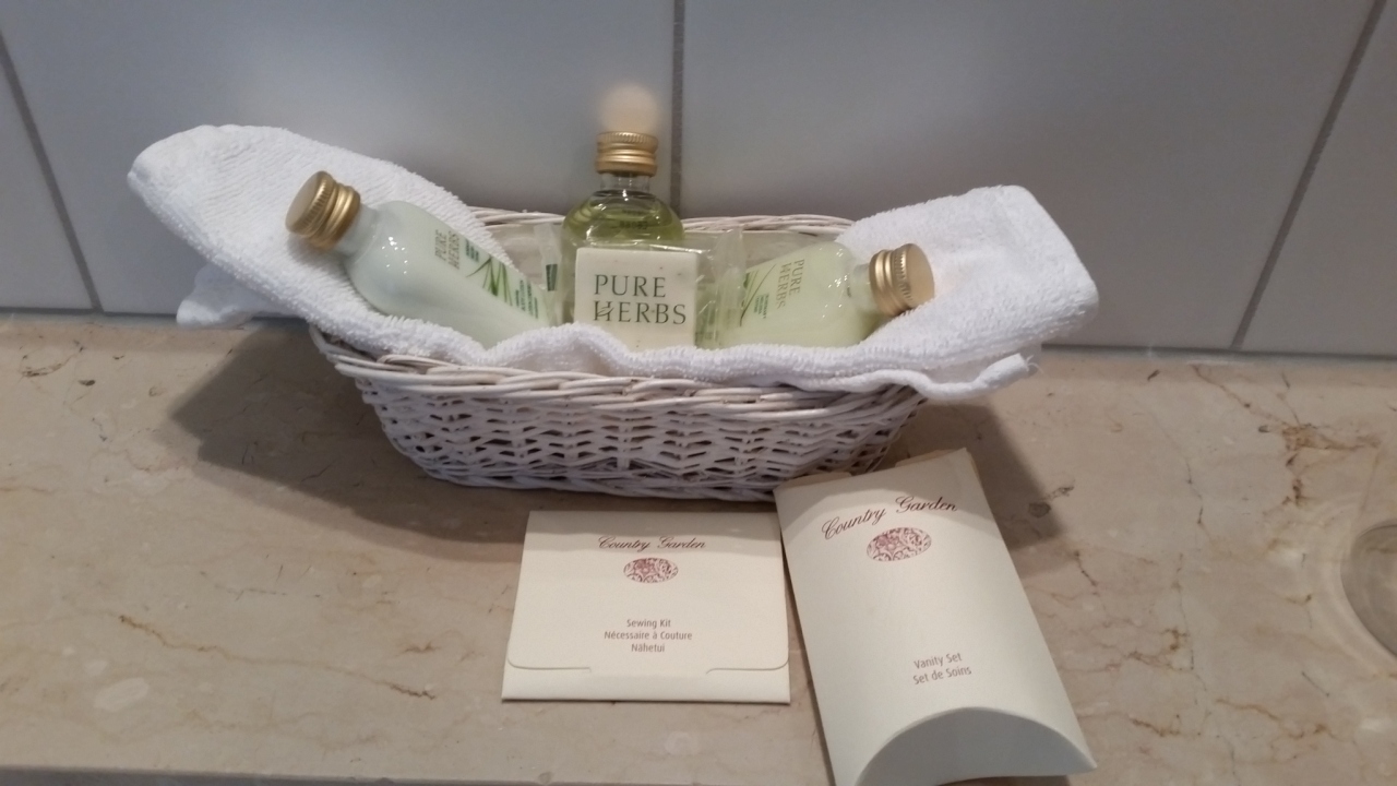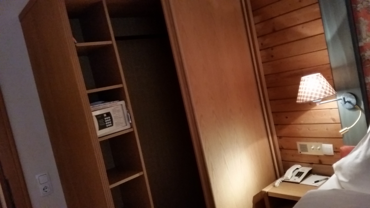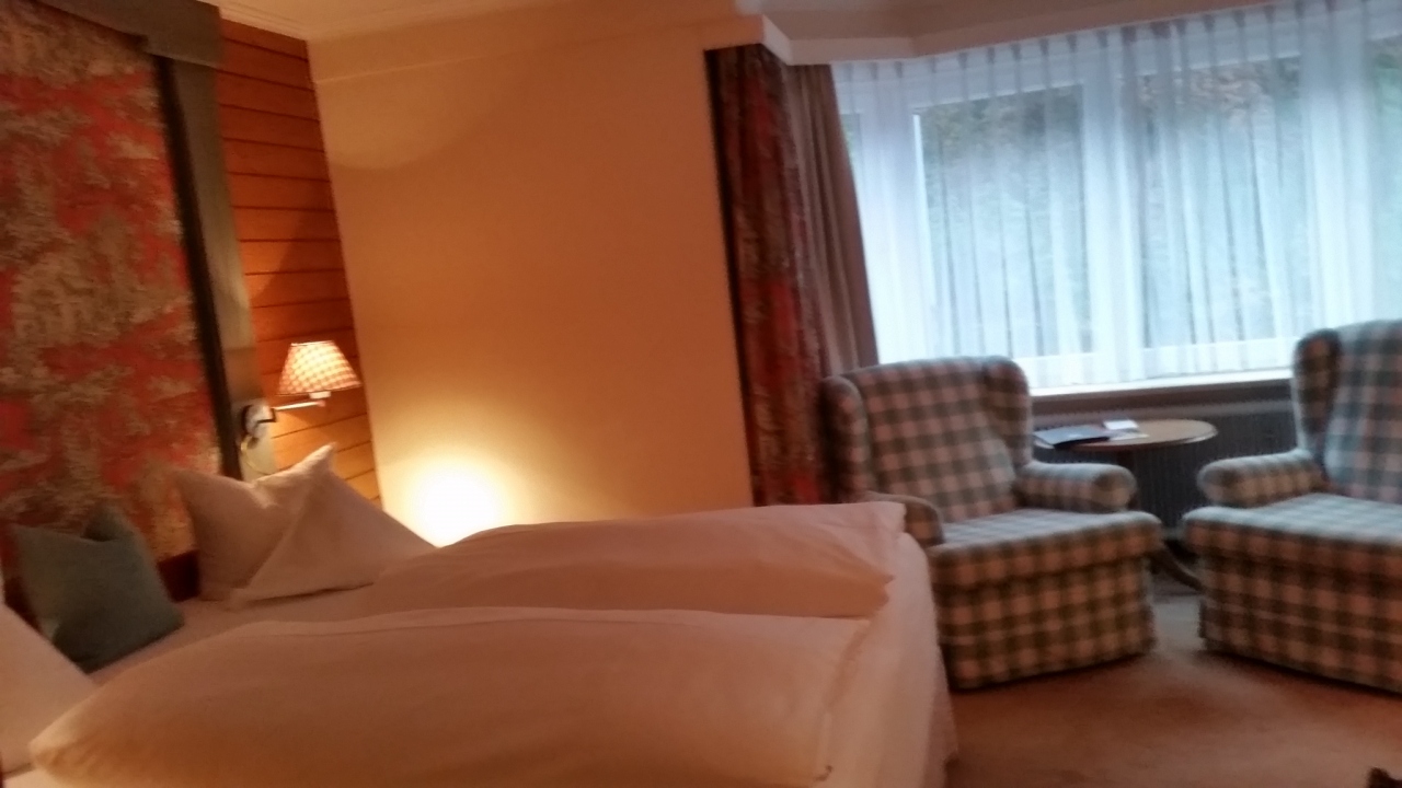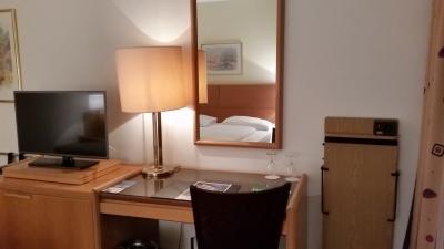 ツアーで1泊しました。ハイリゲンブルートで一番の高級ホテルだそうで、かわいい感じのホテルです。かわいい模様の箪笥かと思ったら、テレビがしまってありました。サウナもあるそうですが使ってないので分かりません。洗面台が二つ。部屋は広いです。