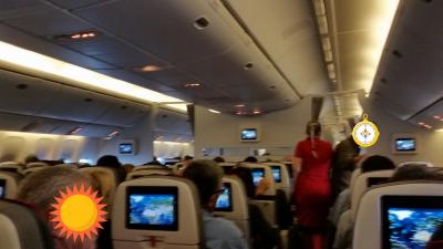 ツアーで成田~ウィーンを往復利用しました。座席は3-4-3.CAの制服が、帽子、制服上下、ストッキング、靴と全て赤、赤、赤。目がちかちかします。男性CAのパンツは黒でした。お食事の味は、ごはんは普通の日本のごはんで美味しかったです。おかずは塩が効きすぎ。親しみのある接客態度でした。