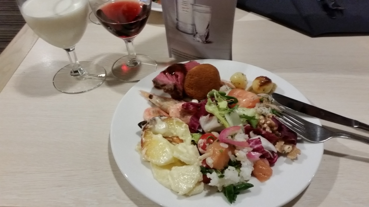 ツアーで宿泊しました。空港に近いホテルです。21:15にイン8:30アウトで、夕食・朝食・寝るためのホテルでした。夕食は前菜がサーモン、メインがチキン、デザートがベリーフロマージュ。朝食はブッフェ。味は普通。清潔ですが、バスタブがなく残念でした。
