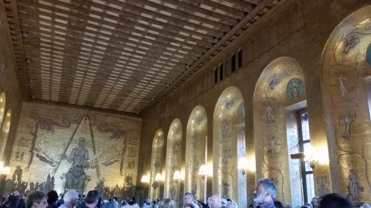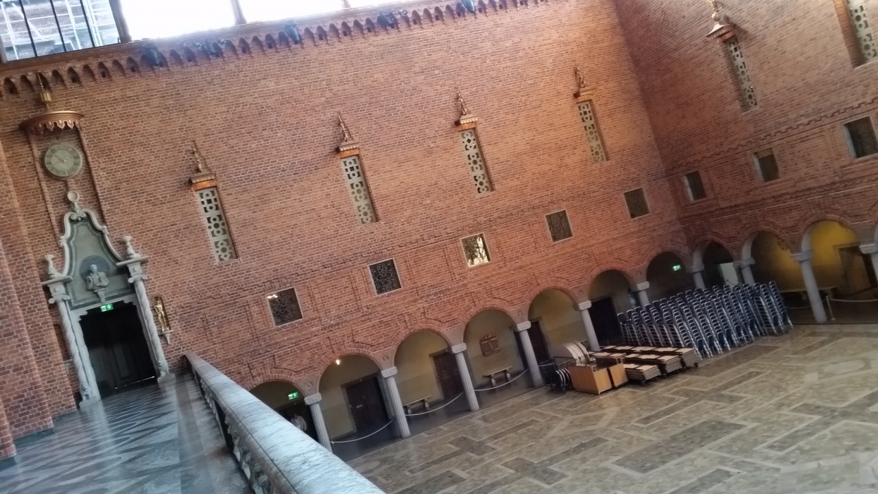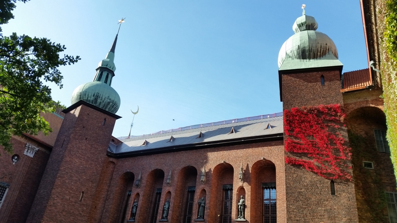 ツアーで訪問しました。中庭の赤いツタが美しいです。中は青の間と黄金の間がお勧め。青の間はノーベル賞受賞祝賀晩さん会が行われる場所で、高い天井、赤いレンガの壁が美しいです。黄金の間は1800万枚の金箔モザイクで飾られ、豪華絢爛。
