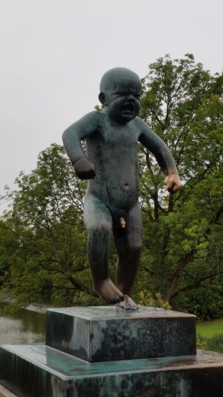 ツアーで訪問しました。広さ32ha、グスタフ・ヴィーゲランの作品が200点以上展示されています。作者は解説は一切していません。見る人のご自由にと言うことなのでしょう。「怒りん坊」の幼児像が有名ですが、私は女の子が男の子を睨みつけているのが好きです。