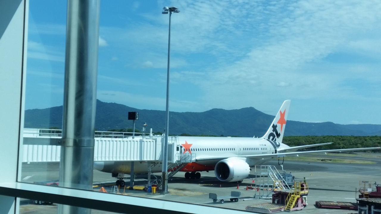 ジェットスターの成田~ケアンズ直行便を利用し、その際利用しました。国際空港ですが、便数が少なく、コンパクトにまとまっている空港です。成田から早朝5時過ぎに着き、空港から出るとすぐ、タクシー乗り場があり、便利です。また、プライオリティラウンジがあり、成田より広く、はるかに品数が多く、中で搭乗案内もしてくれます。お店は少ないです。