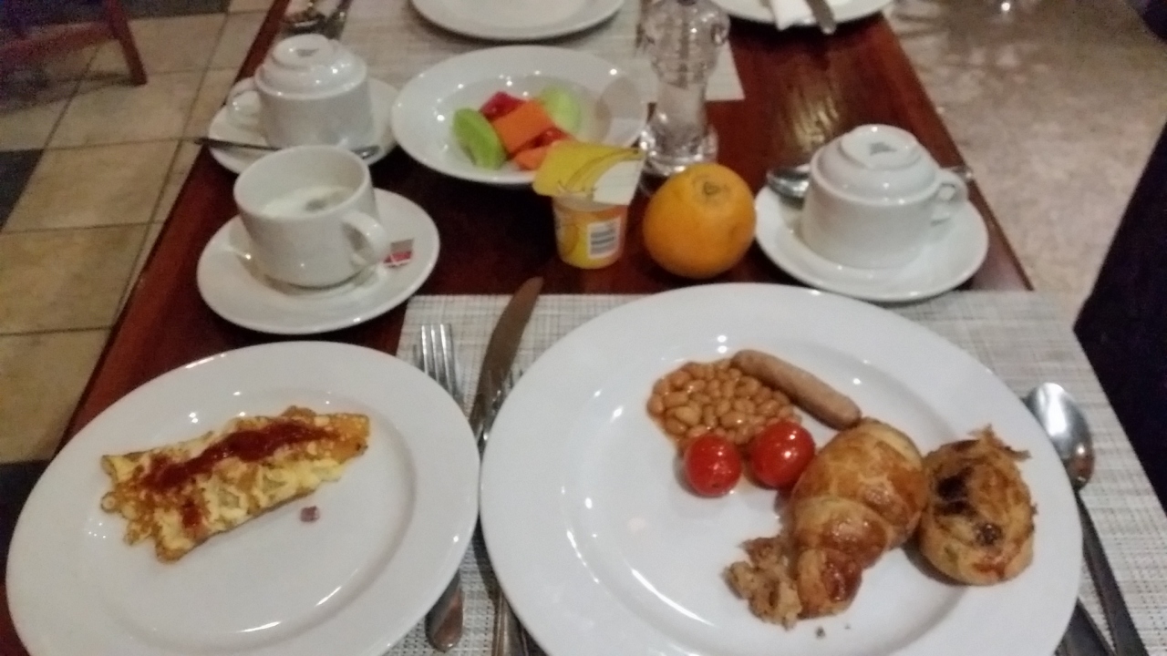 成田~香港~ヨハネスブルク~ビクトリアフォールズと乗り継いでようやくたどり着きました。ヨハネスブルクからは100分。ベジタリアンカレーが辛すぎない、程よい辛さで美味しかったです。JAL系列のワンワールドメンバーなので、JALのマイルが貯まるのが嬉しいです。