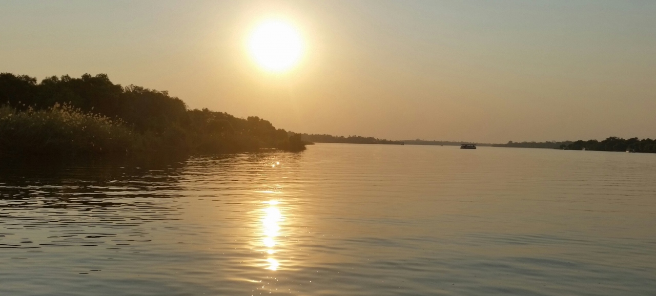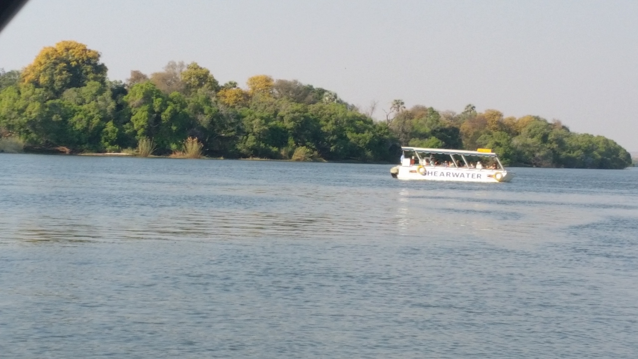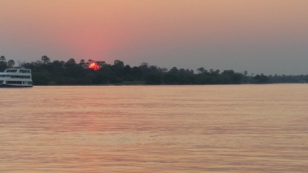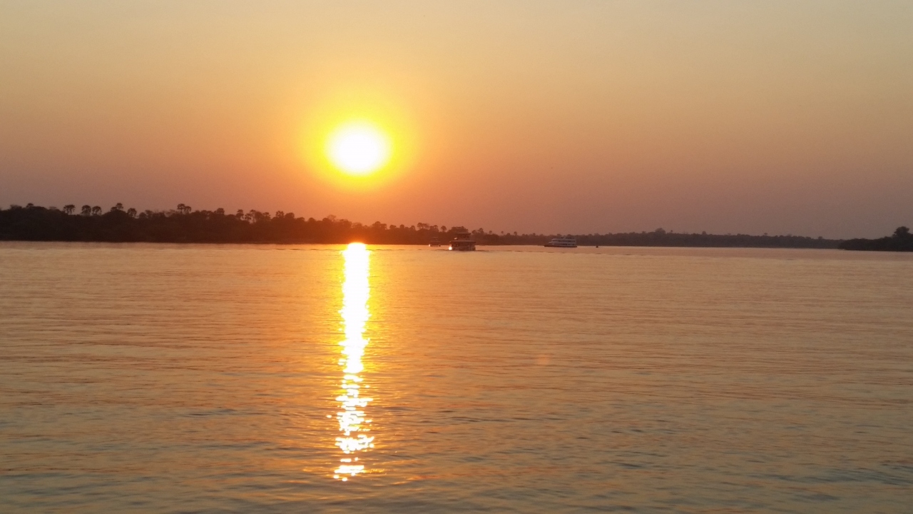 ツアーで1艘の船を貸し切り、ザンベジ川を約2時間クルーズしました。船内ではアルコールやソフトドリンクが飲み放題。岸や川には、象、カバ、ワニがいて、アフリカに来た実感がわきました。日が沈んでいく様子、日の色、照らされる川の色が変わっていく様子が大変美しかったです。