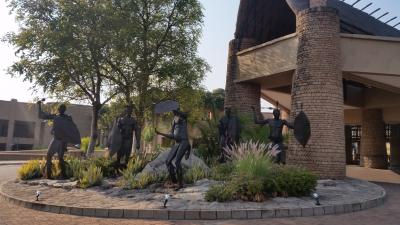 成田~香港~ヨハネスブルク~ビクトリアフォールズと乗り継ぎ乗り継ぎで、ようやく到着しました。さほど広くはありませんが、新しい綺麗な空港です。現地の方達が、現地の衣装?をまとって歌とダンスを披露していました。写真を撮ったらチップが必要らしいです。