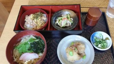台風12号が接近している日曜日に訪問しました。台風接近のため13:30までの営業となりました。美術館の後のお楽しみと言うことで、ランチを頂きました。西鉄お得クーポンを利用したので、食前に無料でお抹茶セット、ランチはそぼろ定食を頂きました。味はそこそこで、女性向きの量です。クーポンで紅茶ティーバック2パックを頂き、代金は10%オフでした。