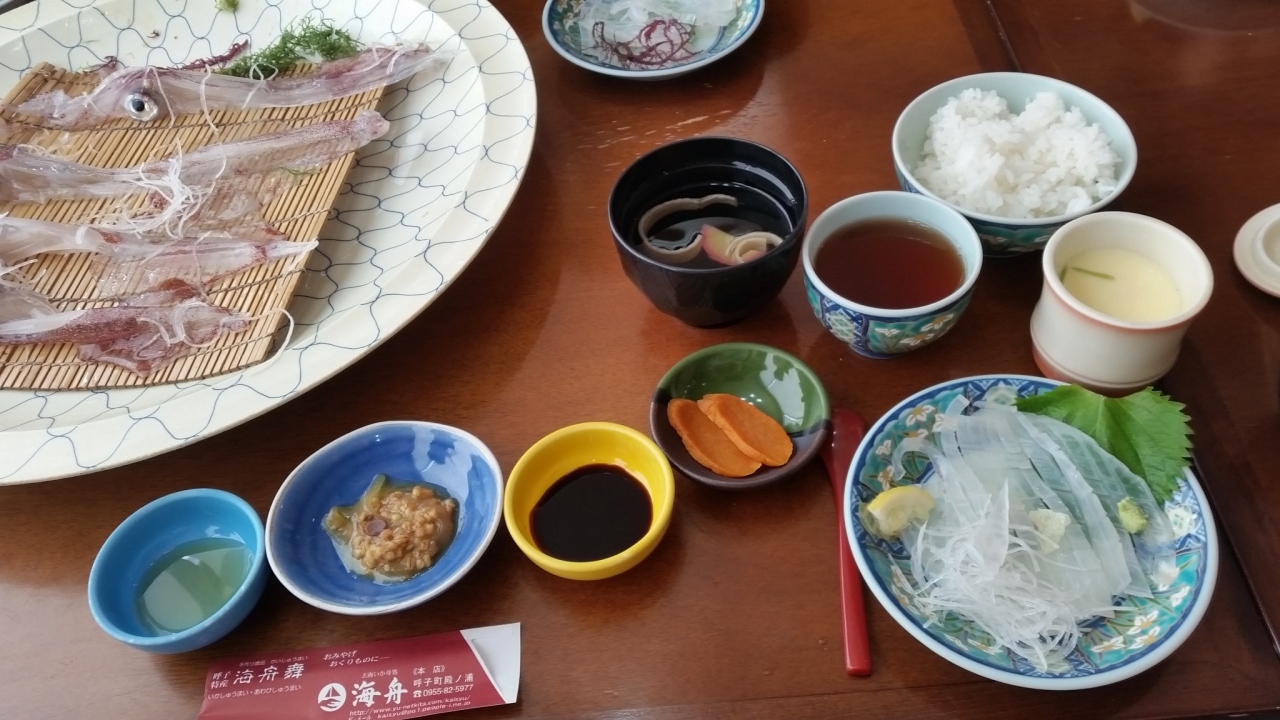 日帰りバスツアーのランチと買い物で訪問しました。ランチはイカと牛すき焼き。どちらも美味しかったです。3団体入りましたが、店員はてきぱきとこなしていました。1階では魚やお土産物を売っています。魚は安いようです。