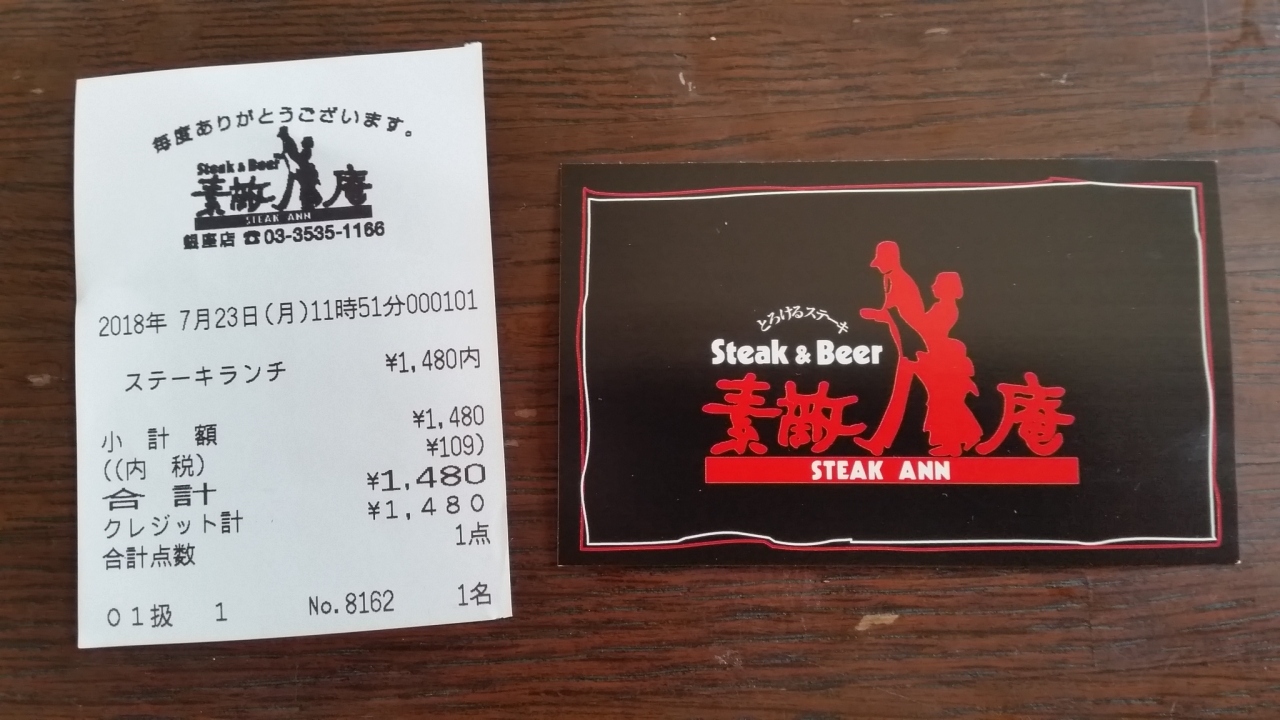 地下鉄丸ノ内線銀座駅C-9出口すぐの、銀座インズB1にあります。11:30のオープンを少し待って入店しました。女性一人でも気軽に入れて、ステーキランチが1480円。コーンポタージュスープ、野菜サラダ、付け合わせ野菜たっぷりのステーキ、ブルーベリーシャーベット、ご飯、温かいお茶が付きます。スタッフがきびきびと働き、お客の食の進み具合を見ながら一品ずつ出してくれます。美味しいです。