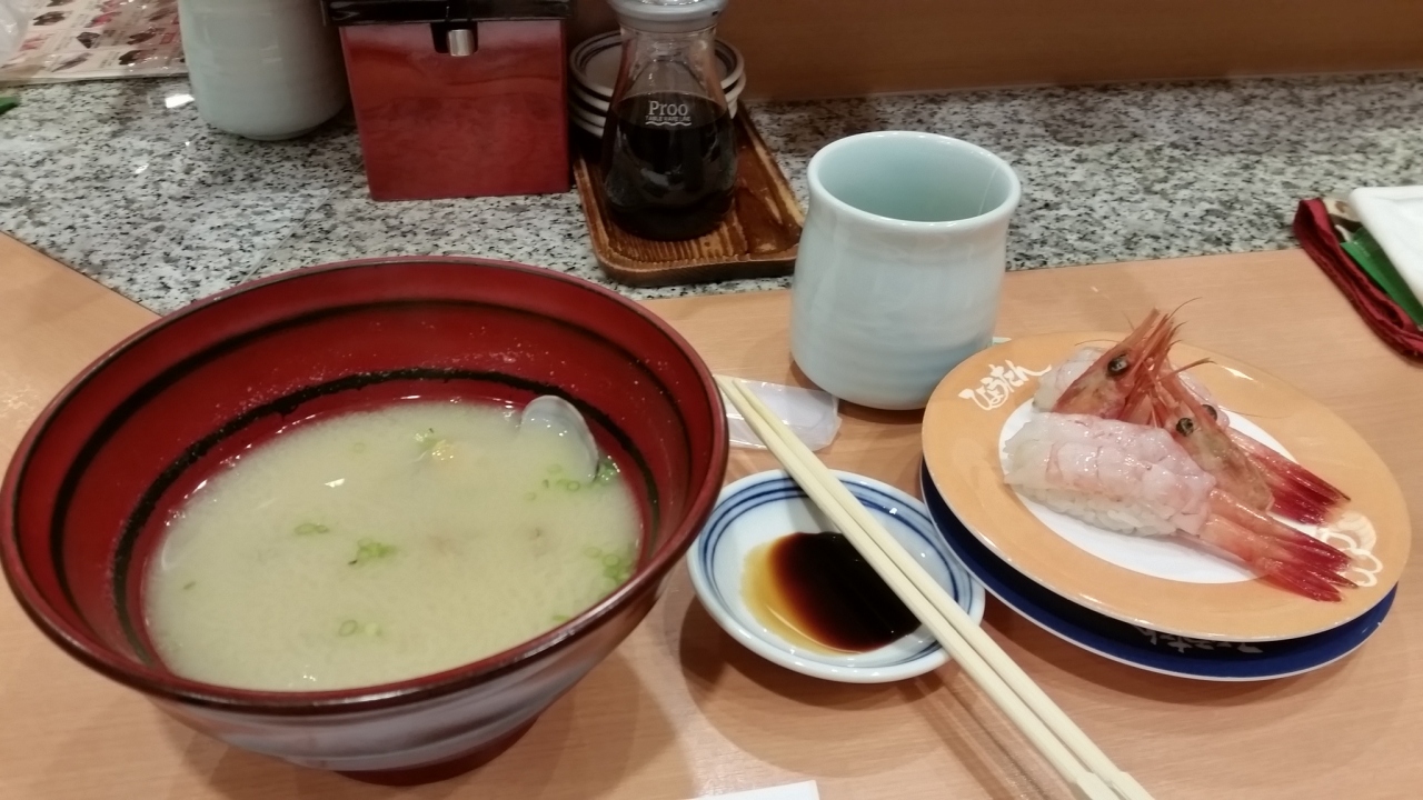 夕方の福岡発の飛行機だったので、福岡最後の食事に何が食べたいかを考え、回転するここに来ました。平日正午でしたが、順番待ちの店の前の丸椅子は満席。20分待ちました。朝が重かったので、軽く食べようと考え、甘エビ、貝汁、穴子、車エビ、ウニを頂き2100円。美味しく、心置きなく福岡を離れることができました。