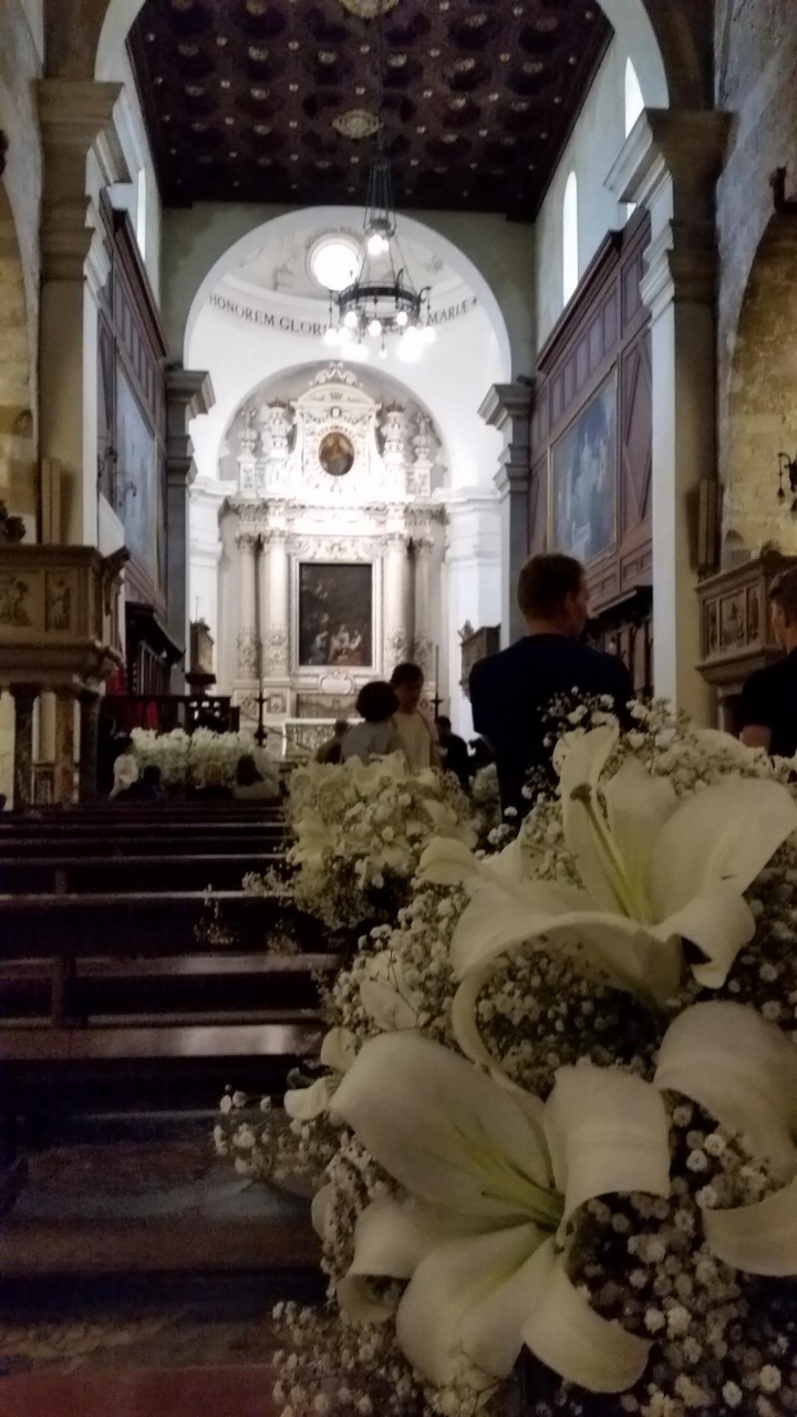 ツアーで訪問しました。年に3日だけ行われる花絨毯の展示が見たくて、このツアーを選びました。レアーレ門からまっすぐ伸びる、ヴィットリオ・エマヌエーレ通りから、右に曲がった通りがニコラチ通りで、花絨毯が敷かれています。向かいのサンカルロ教会の屋上から眺め、通りを歩いて眺めました。花・花びら・茎・葉・種・米・木片を使って、色とりどりに敷き詰めてあり、大変美しいです。