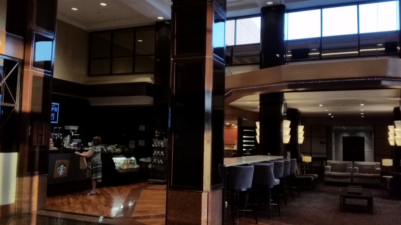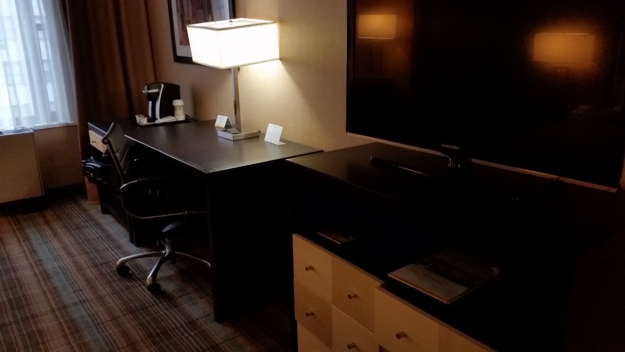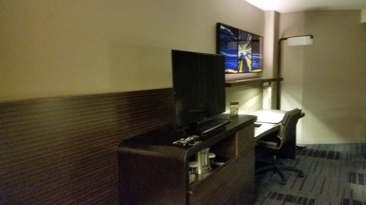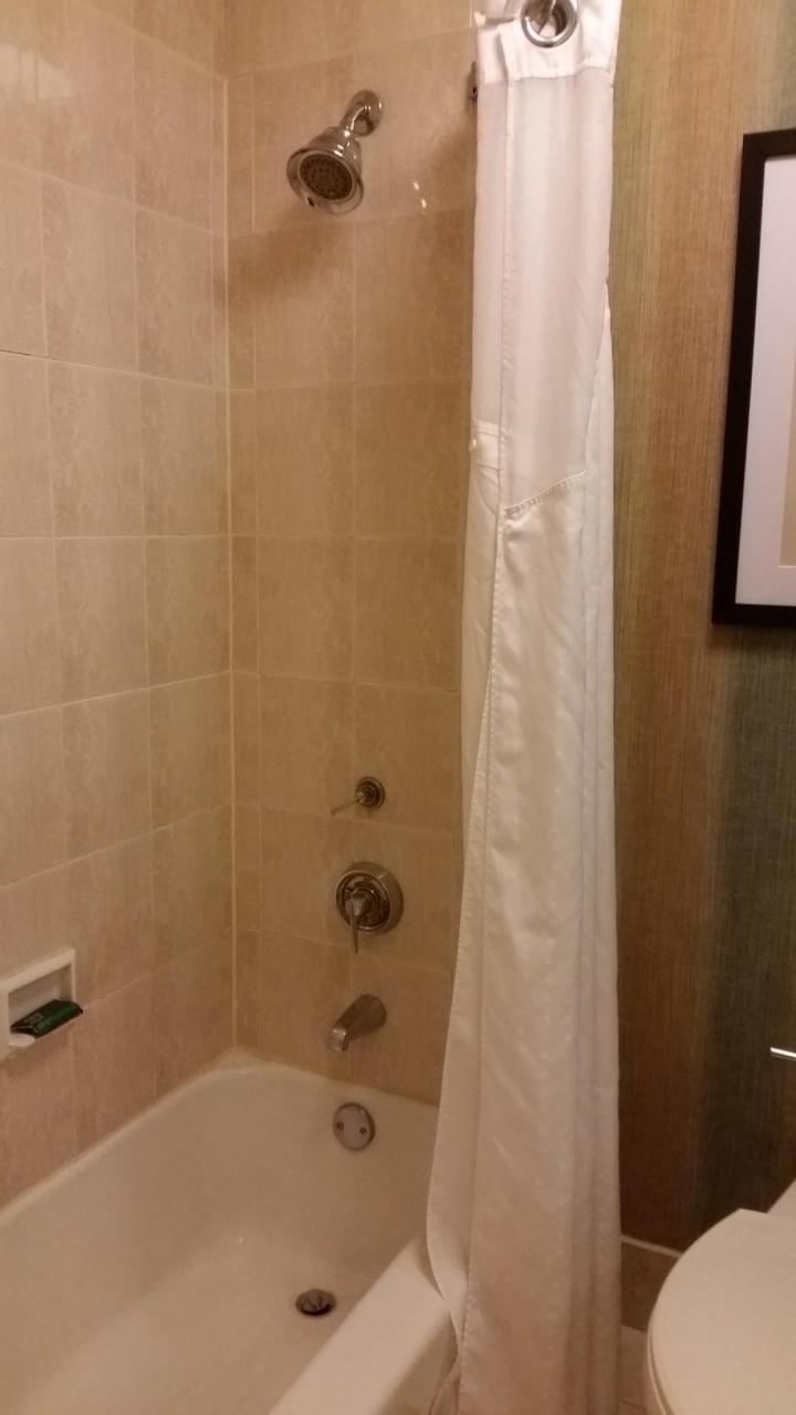 ツアー初日に宿泊しました。ヒルトンという名前ですが、ツアーで泊まるくらいですから、下位の方に入ると思います。ニューヨークJFK空港から、渋滞もあり約2時間。ニューアーク空港は目の前です。ロビーはWifi無料。アイロンとアイロン台、コーヒーメーカーはあります。が、上に埃、内部も埃だったので、持参したマイポットを使用しました。固定式シャワーと浅いバスタブがあります。食事は、我々グループだけ、バンケットルームにて。野菜やヨーグルトはありません。