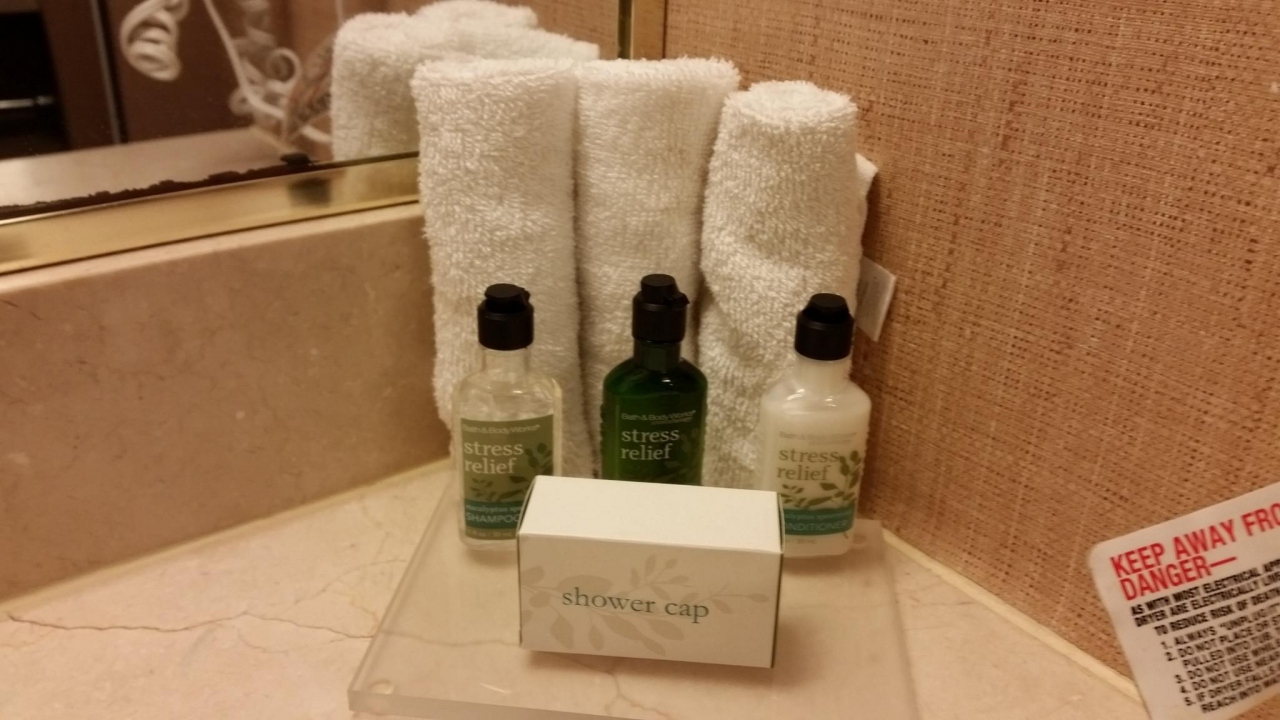 ツアーで1泊しました。浅いバスタブと、固定式シャワー、コーヒーメーカーがあります。wifiは無料。近くのショッピングモールにホテルからバスが出ていると、翌朝聞きました。他の部屋にはミネラルウォーターが2本置いてあったそうですが、私の部屋にはありませんでした。朝食にはフルーツとヨーグルトがあり嬉しかったです。