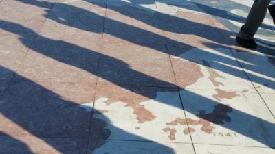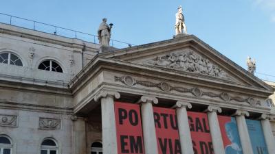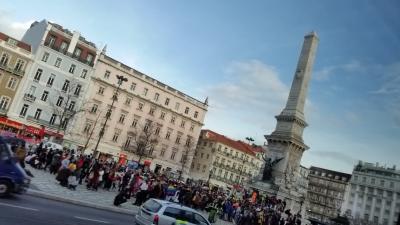 ツアーの集合場所です。中央円柱にはドンペドロ4世のブロンズ像。周囲にはカフェや土産物屋が並び、バスやタクシーの乗り場もあります。国立劇場も、ロシオ駅も目の前です。たまたま、デモ行進をしていて、警官も大勢いました。リスボンで一番賑やかな広場です。
