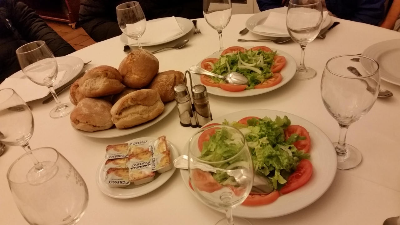 ツアーのディナーで訪問しました。メニューはパンとサラダ、イワシの塩焼きとジャガイモ、焼きリンゴ。紅茶は2.5ユーロ。サラダは味がなく、マイドレッシングで。イワシは1匹でよいと言ったのに、2匹盛り付けられました。マイポン酢で。デザートが出て来るまで時間がかかったので、期待したのですが、冷めた焼きリンゴでした。海が目の前ですが、夜なので見えませんでした。