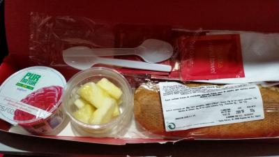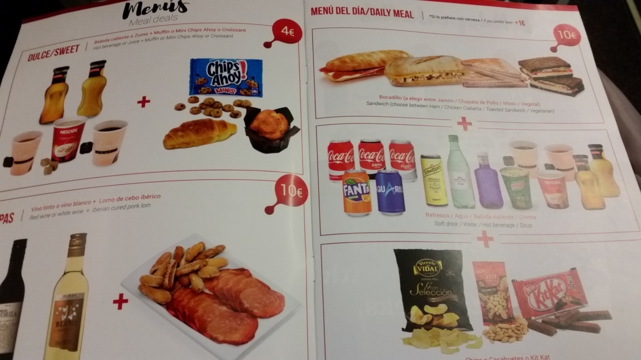 ツアーで成田~マドリッド~サンティアゴを往復利用しました。国際線では食事が2回、軽食が1回出ました。量としては普通食1回、軽食2回程度。他社より軽めです。エンタメ映画は日本語版はありますが、少な目。CAは日本人もいて、日本語放送もありました。国内便は飲み物食べ物すべて有料。テレビなしです。