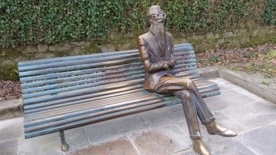 ツアーで訪問しました。旧市街と新市街との境の道路を渡ったところにある公園です。修復中ではありますが、カテドラルの写真を撮るのに、ベストポジション。中央の散歩道の両側にはマロニエ?の木が植えられています。二人のマリアさんが立っていて「ナンパ」しています。詩人も椅子に座っています。