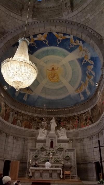 ツアーでトイレ休憩も兼ねて訪問しました。高台にあるので景色は抜群。リマ川も大西洋も下の町も見えます。バスでなければ、ケーブルカーもあり山の頂上へ行けます。黄色いミモザの花がもう咲いていました。教会には大きなバラ窓があり、ちょうどミサをしていました。
