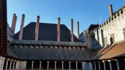ツアーで訪問しました。初代ブラガンサ公爵となったドン・アファンソによって15世紀に建てられましたが、16世紀に廃墟になりました。その後改修され、政府の公館として国賓の接待場にも使われているそうです。家具は派手ではなく荘厳な感じで復元されています。煙突が多い建物です。