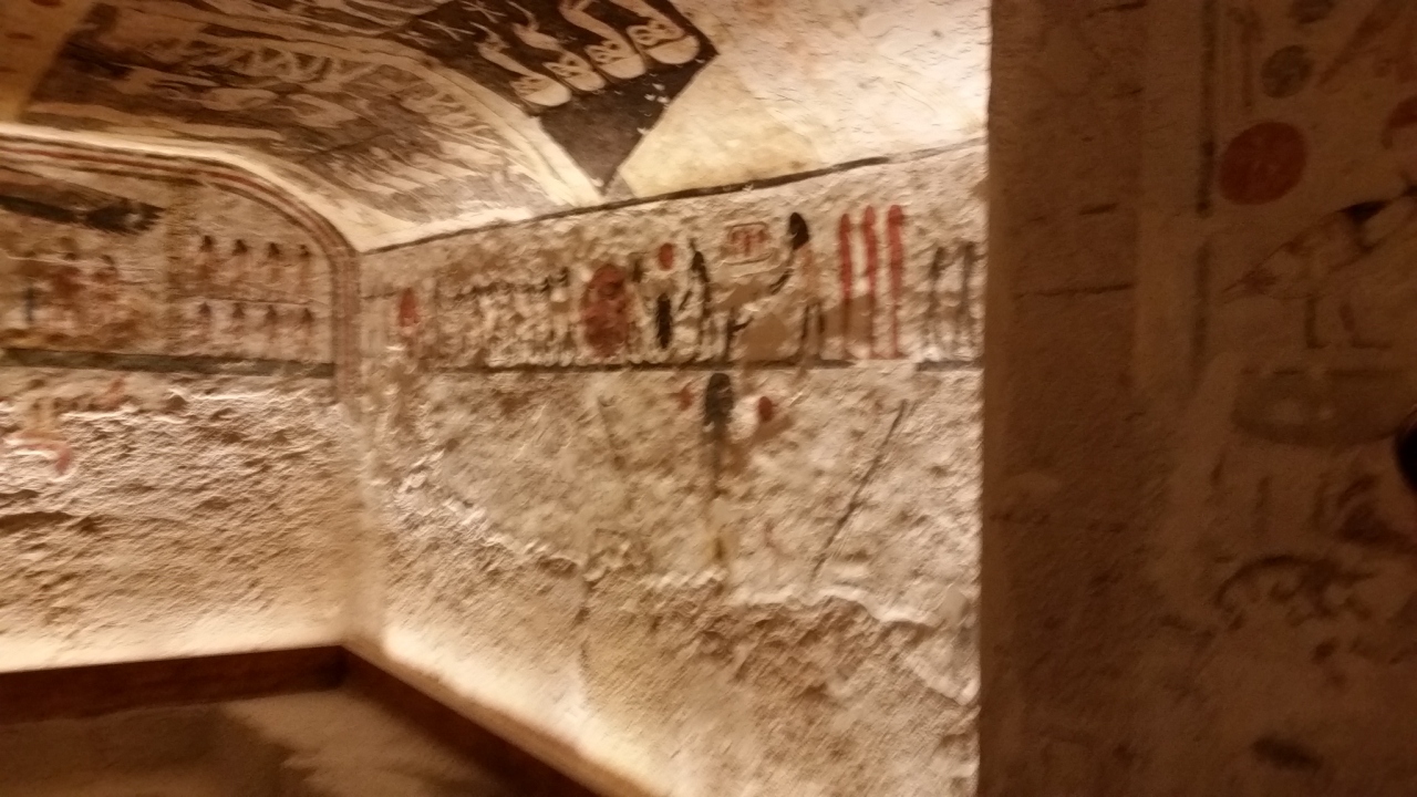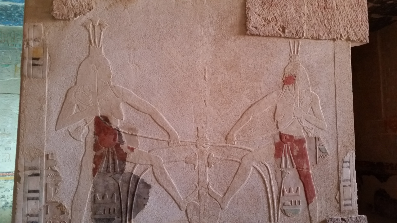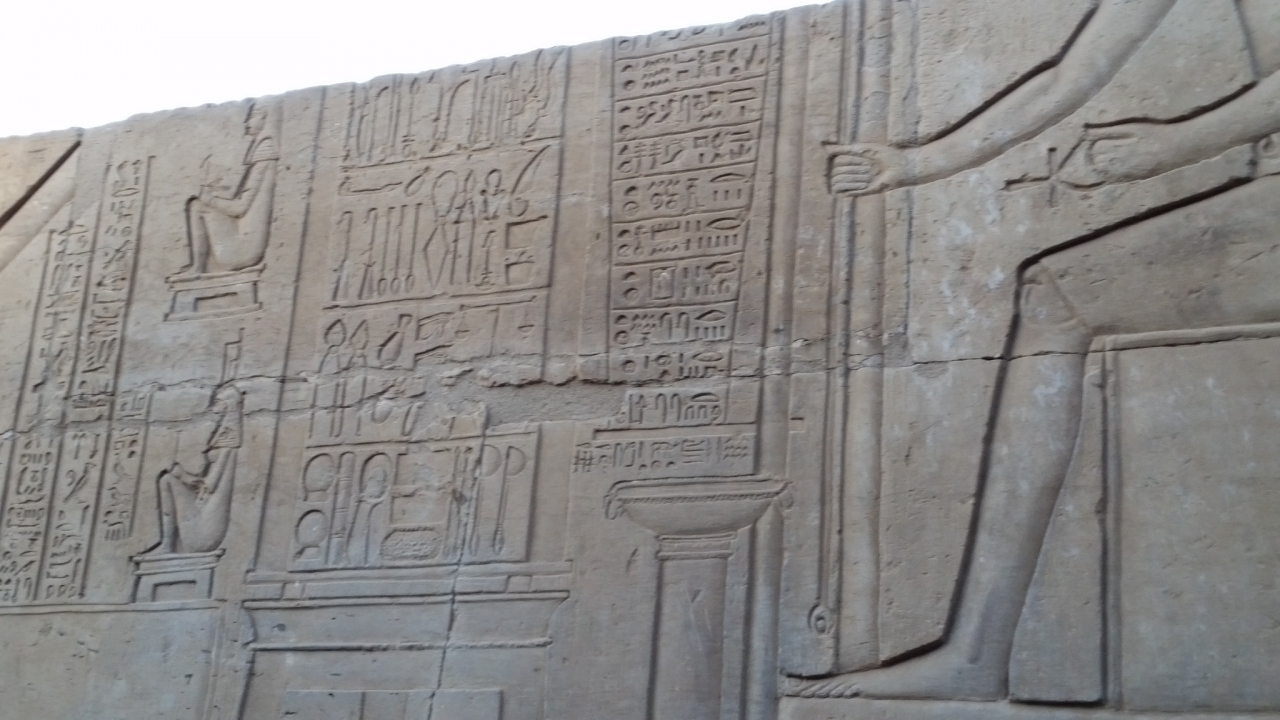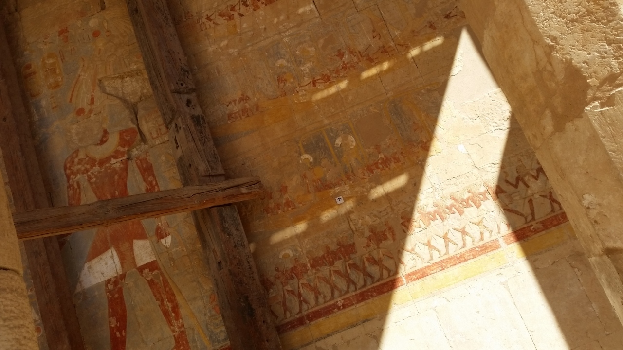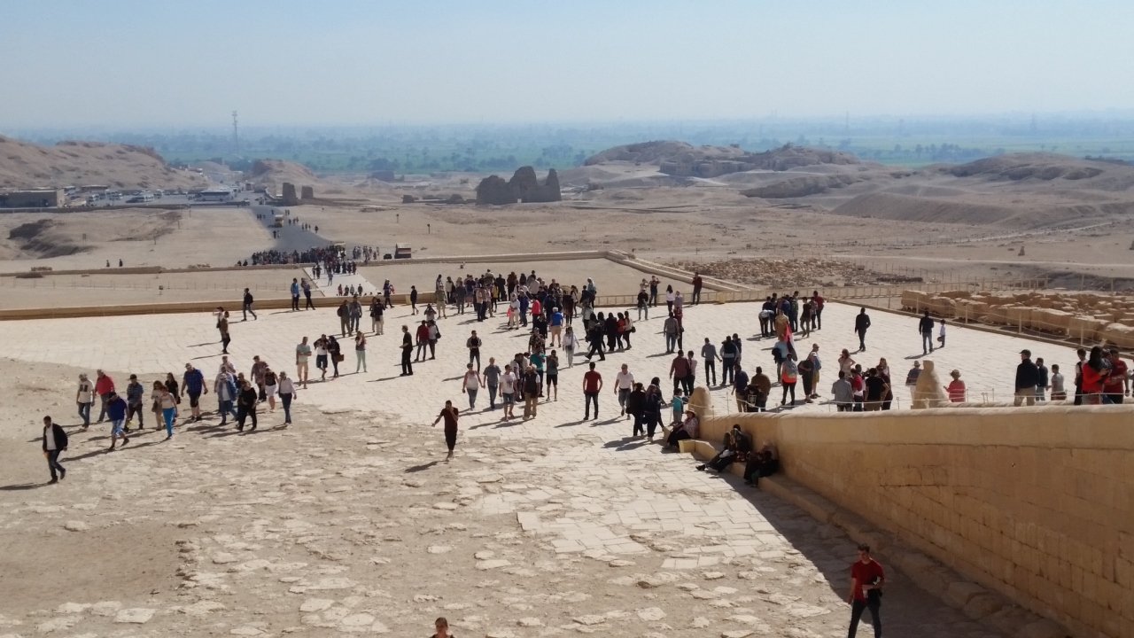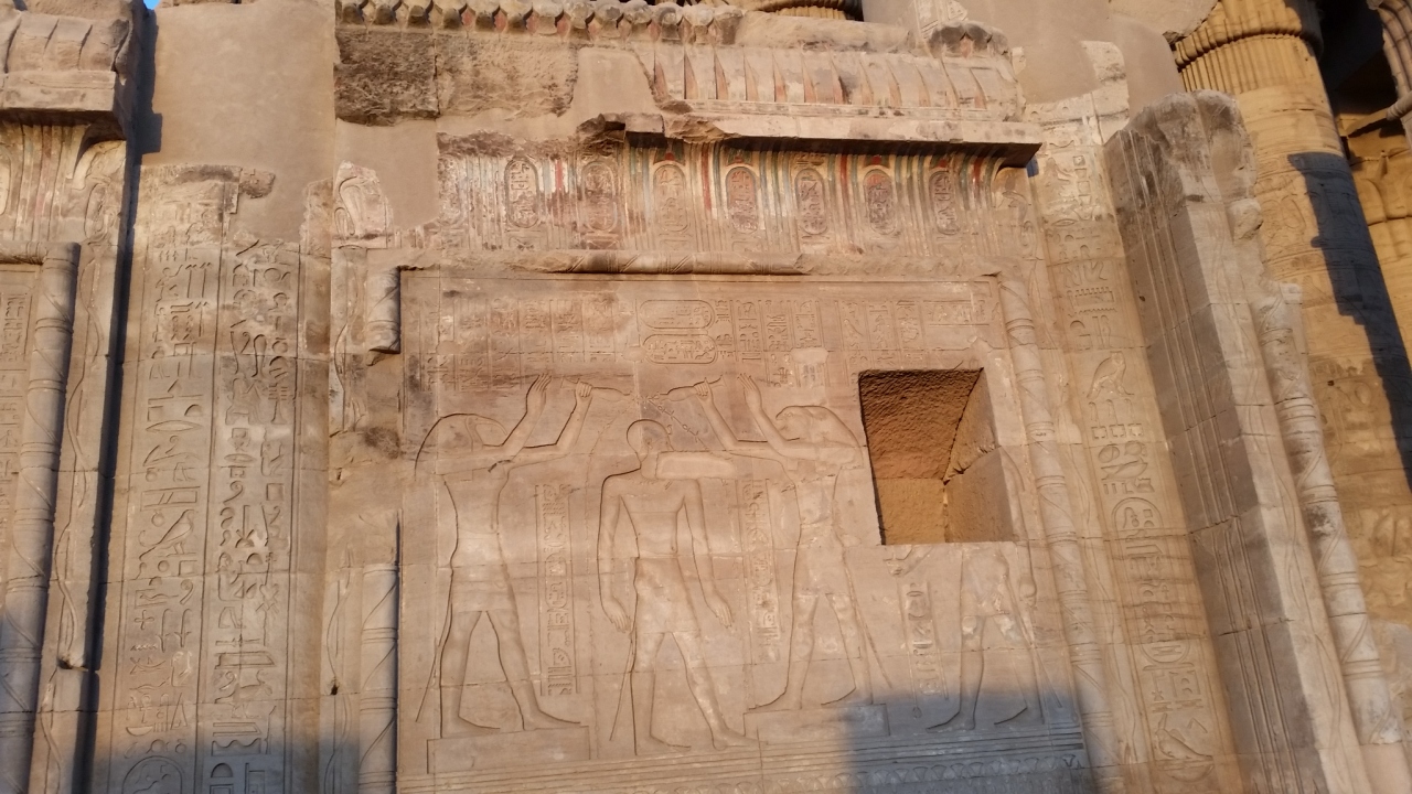 ツアーで訪問しました。片道300km3時間強かけて、ノンストップで行きました。砂漠を走り続け、ナセル湖が見えてきて、緑も見えました。写真で見たのと同じ像。でも、人がそばに行くと、大きさが全く違う。ラムセス2世が妻のネフェルタリのために造った物で、彼と彼女と子供がいて、ほんわかしました。