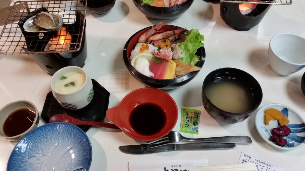 日帰りバスツアーのランチで訪問しました。アワビ1個と7種類の刺身食べ放題。甘エビが好きなので、お代わりしました。美味しかったです。メニューは変わりますが、バスツアーで何度か訪問しています。食べ終わったら併設のお土産物屋さんへGO。山口のお菓子や、海産物などを売っています。