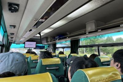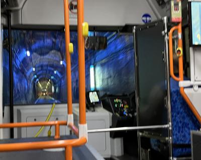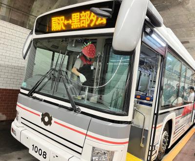 ツアーで乗車しました。扇沢からトンネルの中を通って黒部ダムまで行くバスです。6.1㎞を約16分で結んでいます。昔はトロリーバスだったようですが今は地球にやさしい電気バスになりました。乗客はそこそこ多かったのですが、3台続いて並んで走りました。お客は来た順に10分前には横6列に整列して待ちます。駅員さんのお弁当売りも兼ねた説明も楽しかったので、待つのが楽しかったです。トンネルなので中は暗いのですが画面に、黒部ダムの様子の画像や説明などが流れ、快適な乗り心地でした。