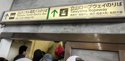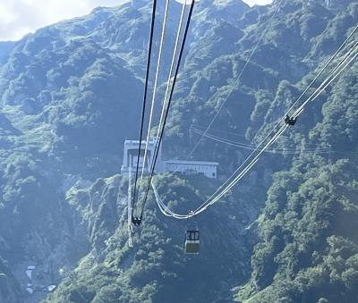ツアーで立山黒部アルペンルートを扇沢から室堂迄往復しました。合計8個の乗り物に乗りました。富山側と言うのは関電トンネル電気バス車内の途中から、室堂までとなります。黒部ケーブルカーや立山ロープウェー、立山トンネル電気バスを乗り継ぎました。乗り物に乗るまで並んで待つ時間が長かったですが、高度が上がり、涼しさも増し、山からの眺めも美しかったです。